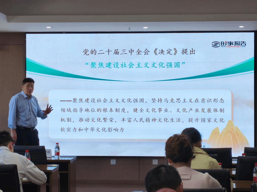在培训会上,毛华兵重点解读了习近平文化思想,指出这一思想是新时代党领导文化建设实践经验的理论总结,是理论与实践的有机结合,更是坚持“两个结合”、推进马克思主义文化理论创新的重大成果,为文化强国建设提供了强大思想武器和科学行动指南。