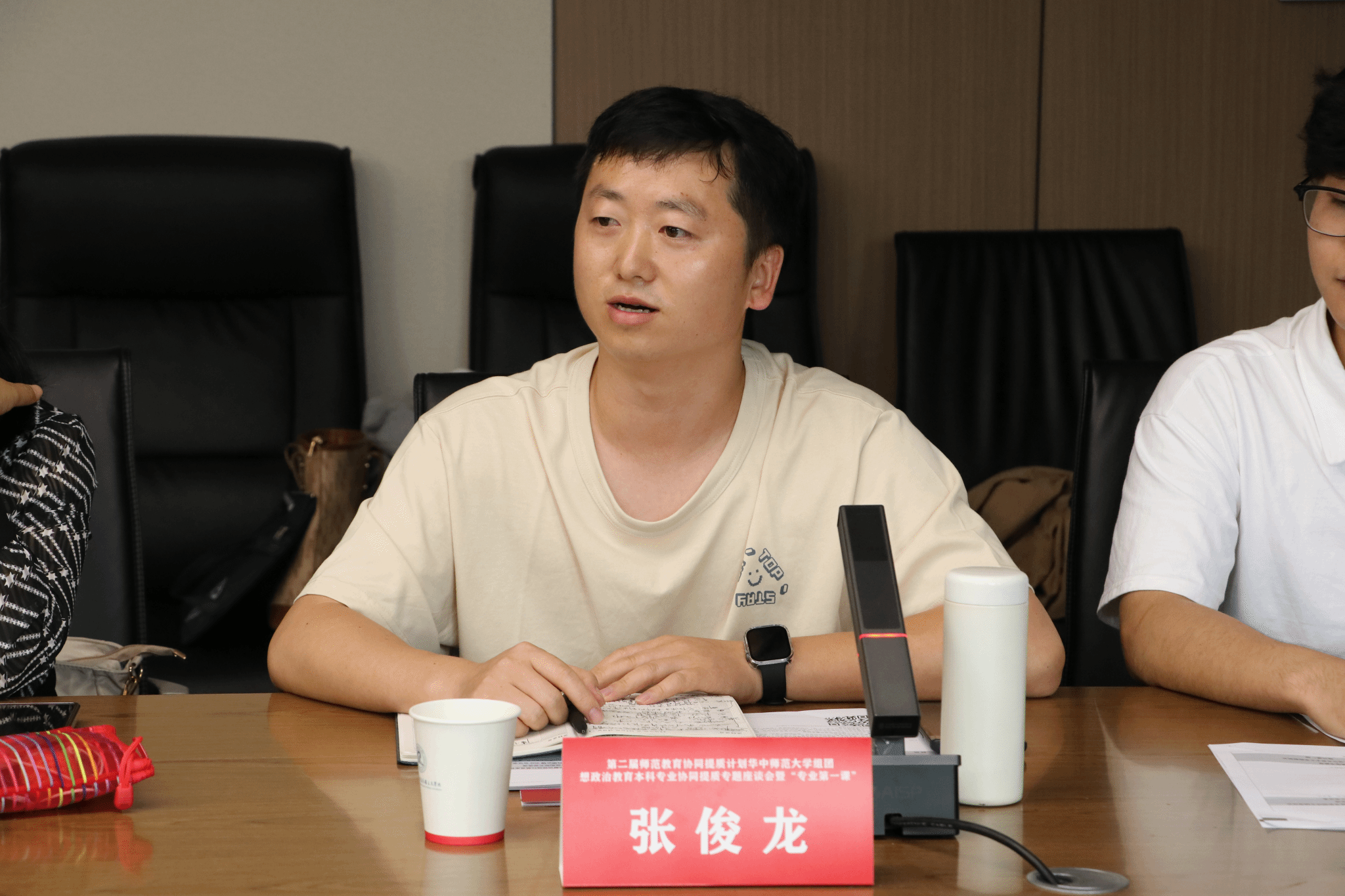 思想政治教育本科专业协同提质暨弘扬践行教育家精神专题座谈会在新文科楼北楼409会议室热烈展开,会议由华中师范大学马克思主义学院副院长邵彦涛主持。