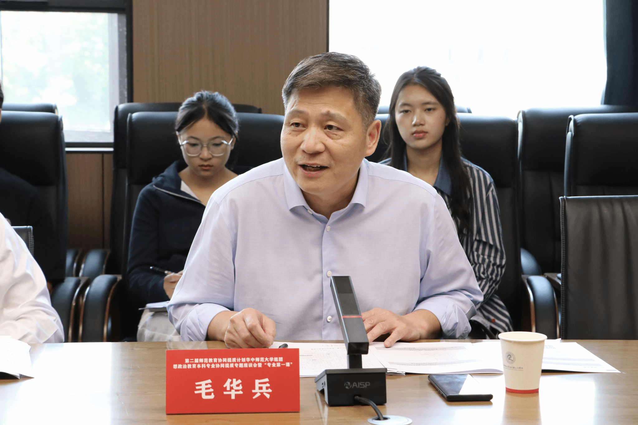 座谈会最后,华中师范大学马克思主义学院院长毛华兵作总结发言。他再次对参会院校师生表示欢迎与感谢,介绍了师范教育协同提质计划的重要使命与目标,回顾了项目启动以来的共识达成与实践经验积累。同时,他对师生提出期望:希望教师们勇担育人使命、提升教学水平;希望同学们脚踏实地、志存高远,抓住新时代机遇,在实践中成长为“四有”好教师。