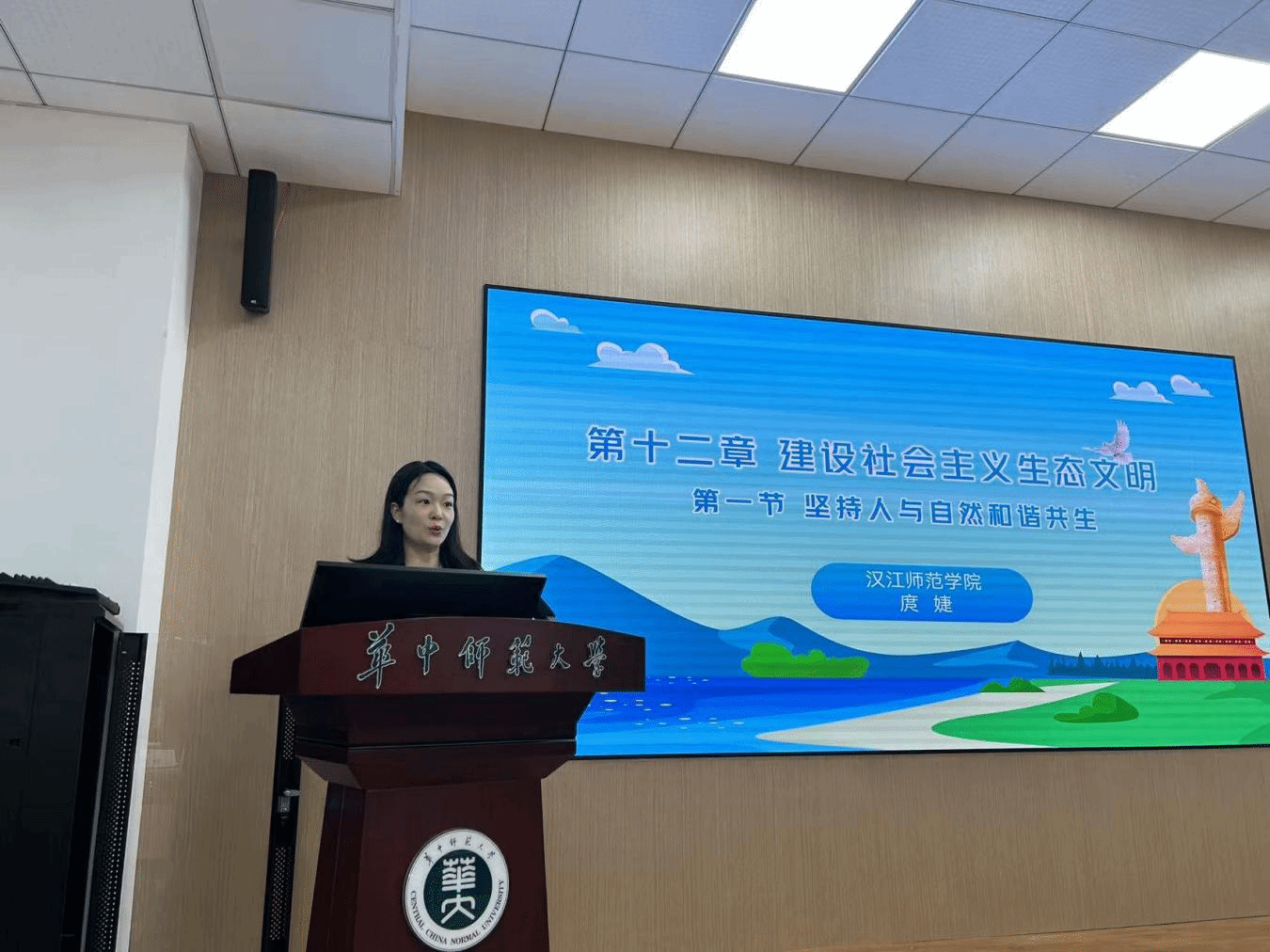第二阶段是思政课集体备课暨交流展示活动。湖北师范大学马克思主义学院讲师陈智会、遵义师范学院马克思主义学院副教授王冬梅、黔南民族师范学院马克思主义学院副教授王耀媛、汉江师范学院讲师马克思主义学院庹婕、华中师范大学马克思主义学院讲师聂敏分别以《“十五五”规划建议为引领加快构建完备的法律规范体系》《全面从严治党是新时代党的建设的鲜明主题》《美好生活:从“向往”到“现实”的民生实践—如何理解不断实现人民对美好生活的向往》《坚持人与自然和谐共生》《中国式现代化的中国特色》为题进行教学展示。