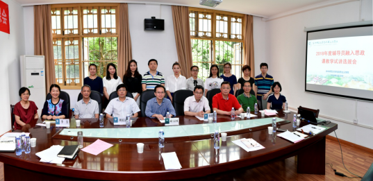 学生工作与思想政治理论课融合计划是实现全员育人、全过程育人、全方位育人的重要途径,也是落实《高等学校马克思主义学院建设标准(2017年本)》(教社科〔2017〕1号)“探索思想政治理论课教师队伍与日常思想政治教育教师队伍深度融合的工作机制”的主要举措.为了更好地推进辅导员与思想政治理论课的深度融合,择优选拔我校优秀辅导员从事我校思想政治理论课部分专题教学任务,2018年5月28日上午,在我院二楼会议室组织召开“辅导员融入思政课教学试讲选拔会”。会议由副院长李芳主持,学工部部长刘宏达、人事处处长李鸿飞、教务处副处长邱宝国、教学督导吴方桐、马克思主义学院教学委员会部分成员、三部一系部长(主任)、教研室主任及教学秘书参加了此次会议并担任评委。