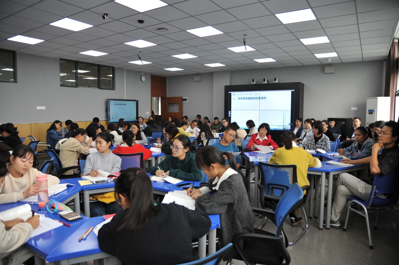 马克思主义学院讯(通讯员 李国健)为进一步营造重视教学、崇尚创新的气氛,促进教学思想更新,进一步聚力教育教学改革,在华中师范大学第四届教学节召开之际,10月18日上午8:50,马克思主义学院“纲要”教研室邵彦涛老师在8414智慧教室主讲了一堂公开课。李芳、梅萍、常泓、张启彬、郑思亮、蔡玲、刘梦觉、孟飞、张安、郑伟、闫燕等老师,以及2018级“高校思想政治理论课教师队伍后备人才培养专项支持计划”博士研究生陈道发、吴芍炎、李国建一道走进邵彦涛老师的课堂进行了听课研讨活动.