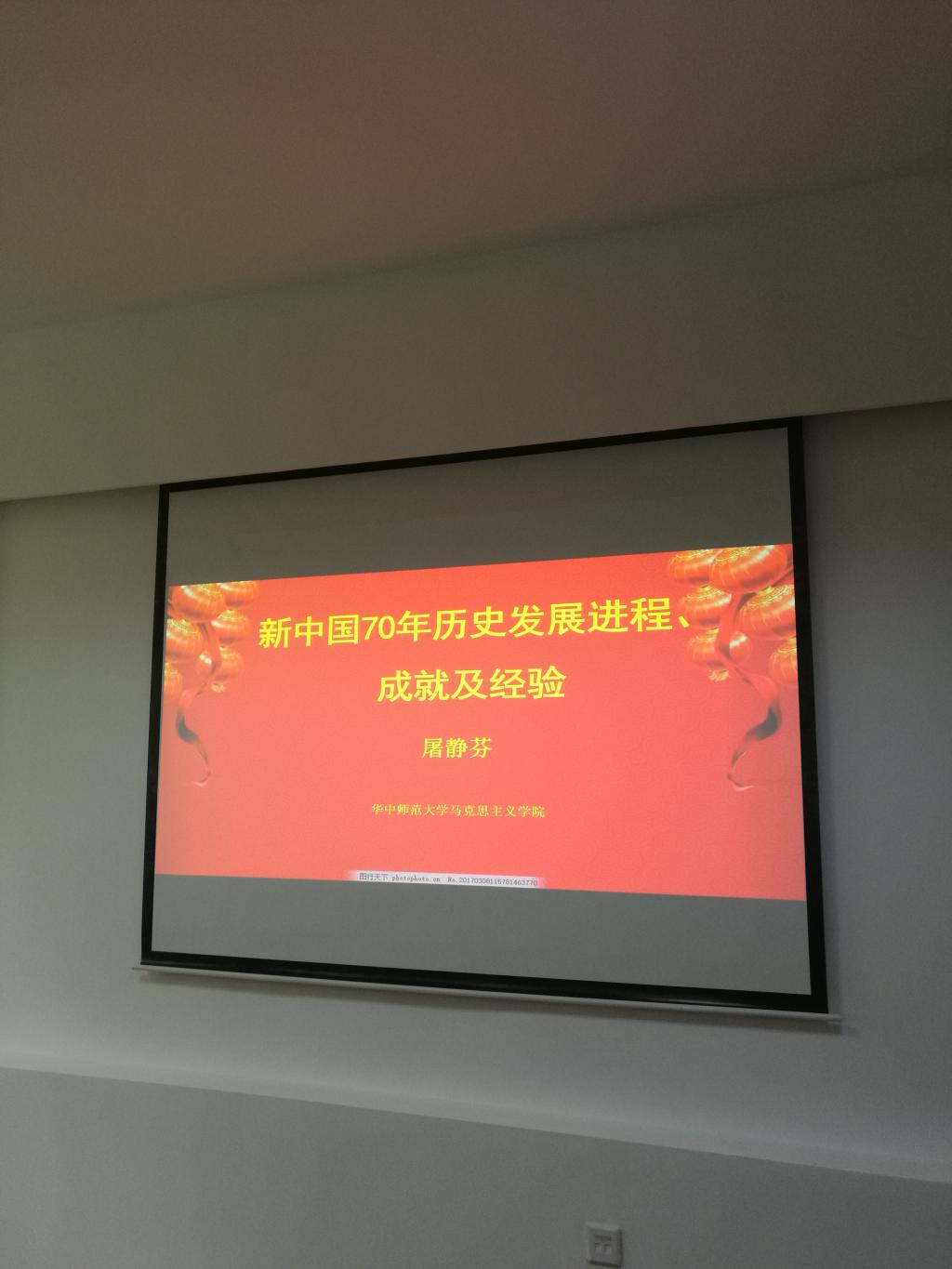 屠教授以“新中国70年历史发展进程、成就和经验”讲授了新中国70年来波澜壮阔的伟大历史,以1978年党的十一届三中全会以界分为前三十年和后四十年,这两个阶段是不能相互否定的,从宏观、中观和微观层面总结了70年来我们取得的辉煌成就,总结了坚持党的领导、坚持人民立场、坚持实事求是路线和坚持弘扬民族精神等基本经验。屠教授的报告既有理论上的分析,也有实际上的总结,;既有翔实的数据,也有到位的分析,把习近平新时代中国特色社会主义思想特别是总书记的国庆讲话精神很好地贯穿其中。