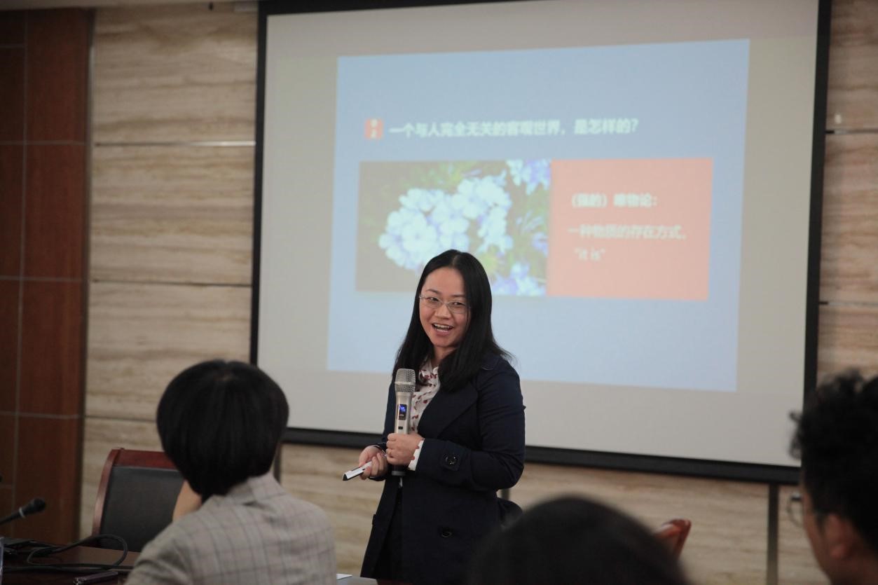 武汉理工大学马克思主义学院庞培培副教授首先以《马克思主义的物质观及其方法论意义》为主题进行了课堂教学展示。庞老师从生活中的两个日常经验入手,引导学生提出并分析物质范畴背后的哲学问题,启发学生思考人与世界、思维与存在之间的关系问题,进而引出哲学的基本问题,阐明唯物主义和唯心主义、可知论和不可知论的本质界限和实质分歧,接着顺理成章地介绍了列宁关于物质的定义,指出了物质定义的理论意义和方法论意义。庞老师的教学既有理论深度,又有情感温度,讲述出了哲学味,又不乏人间烟火,可谓雅俗共赏、深入浅出。