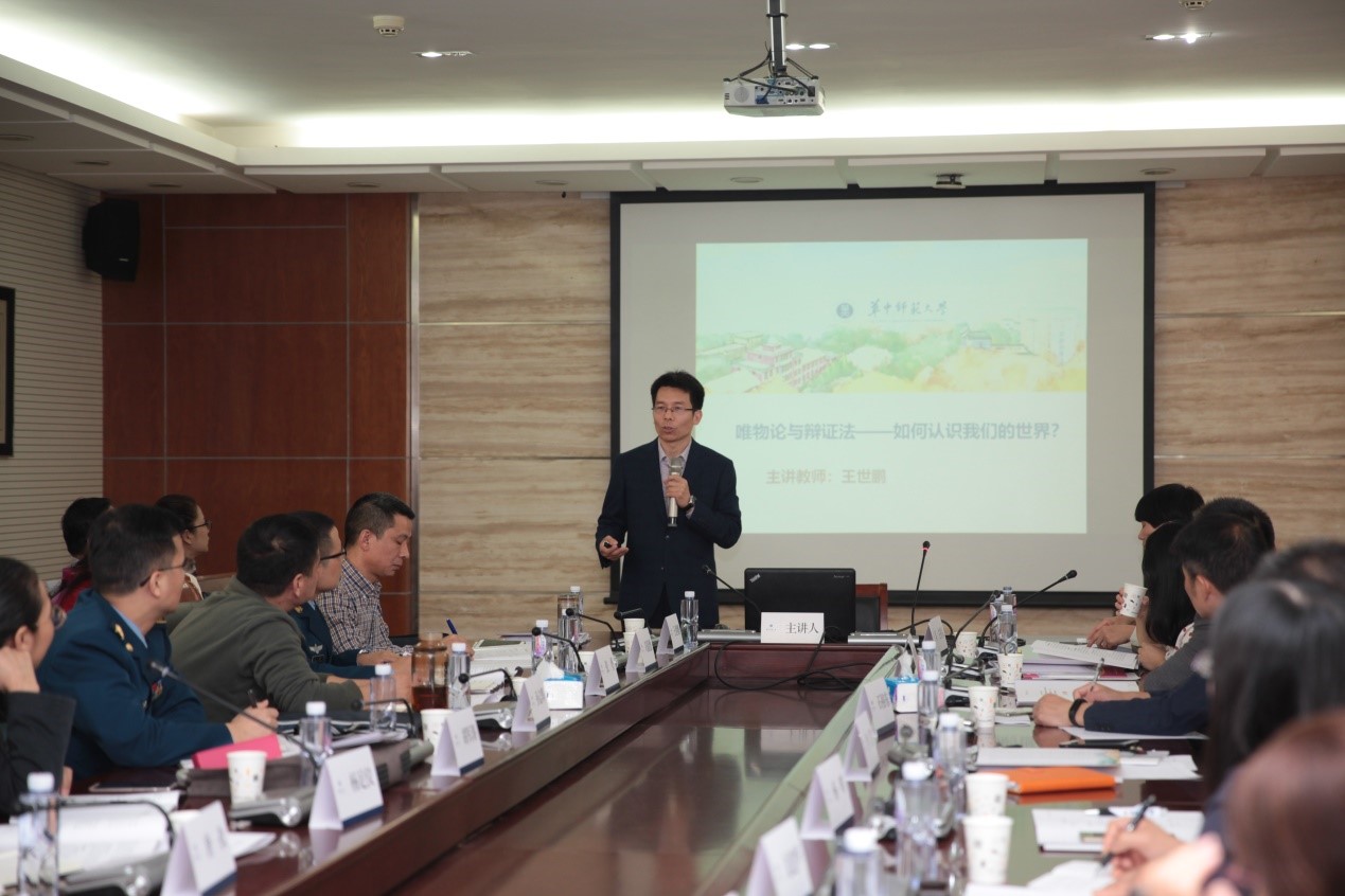 马克思主义学院讯(通讯员:刘喆 余丽萍)为深入贯彻习总书记在思政课教师座谈会上的重要讲话精神,全面提升思想政治课的教学实效,2019年10月20日上午,“同课异构 协同共研”华中师范大学思想政治理论课集体备课研讨会在科学会堂三楼会议厅举行。来自解放军空军预警学院、武汉理工大学、中国地质大学(武汉)、中南民族大学、青海大学、湖北民族大学、湖北工业大学、湖北经济学院、荆楚理工学院、湖北工程学院、湖北美术学院、武汉音乐学院、湖北科技学院等15所高校的50多位教师及我校《马克思主义基本原理概论》教研团队的全体教师共同针对“马克思主义基本原理概论”课第一章“世界的物质性及发展规律”开展了集体备课研讨。会议由“马克思主义基本原理概论”教研室主任丁茜老师主持。马克思主义学院后备人才培养计划的硕士生、博士生及其他人员40余名现场观摩了此次研讨会。