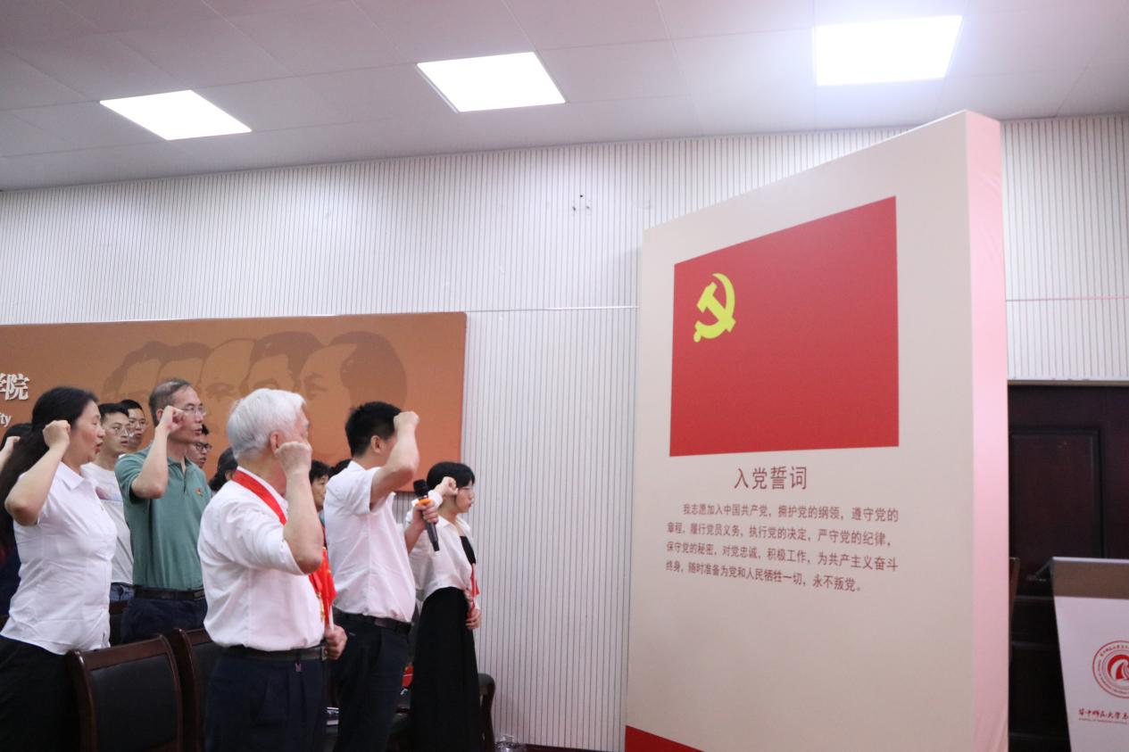 会议第三项,由孙永祥领誓,面向党旗,带领现场新入党党员集体宣誓、老党员重温入党誓词,铿锵有力的誓言、庄严的承诺,告诫全体同志牢记党员身份,明确初心使命,发扬光荣传统,发挥先锋模范作用,在自己的岗位上做出贡献。
