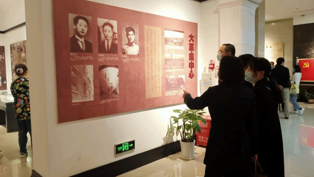 随后,在讲解员的带领下,大家来到会址一楼的特色展览区,主要包括“风云突变”“力挽狂澜”“星火燎原”三个部分。首先,在第一展区——“风云突变”部分,讲解员声情并茂地讲述了八七会议召开的历史背景。1927年,蒋介石、汪精卫掀起反革命政变,大肆屠杀共产党人和革命群众,致使中国革命形势急转直下,尽管党面临严峻的生死考验,但仍同人民群众紧密相连,涌现出一批为革命前仆后继的英勇志士,让革命的精神遍地开花。其次,在第二展区——“力挽狂澜”部分,讲解员谈到在大革命失败后党为挽救革命被迫转移阵地并开展了系列地下工作。而“八七会议”则是中国革命由大革命失败到土地革命战争兴起的历史转折点。会馆内的3D幻影成像展示窗模拟再现了当时会议的场景,会上,毛泽东着重指出陈独秀右倾错误,将其比喻为“同国民党合作的统一战线,就像一座空房子等人去住,但陈独秀始终没有当房子主人的决心”,深入批判和纠正了陈独秀的右倾投降主义路线,并提出了“须知政权是从枪杆子里出来的”思想,当时年仅23岁的邓小平负责了整个会议的记录工作。再次,在第三展区——“星火燎原”部分,主要介绍“八七会议”的正确决策和重要影响。会后,党中央要求各级党组织立即讨论和贯彻会议精神,派出干部奔赴各地发动武装起义,如当时毛泽东以重要特派员的身份回到湖南传达会议精神,改组省委并领导和发动了湘赣边秋收起义。而后,伴随会议精神传达至全国各地,据统计,仅1927年至1934年期间,全国各地爆发的武装起义就有800余次,这昭示着武装斗争的星星之火在神州大地熊熊燃起来并逐渐形成燎原之势。