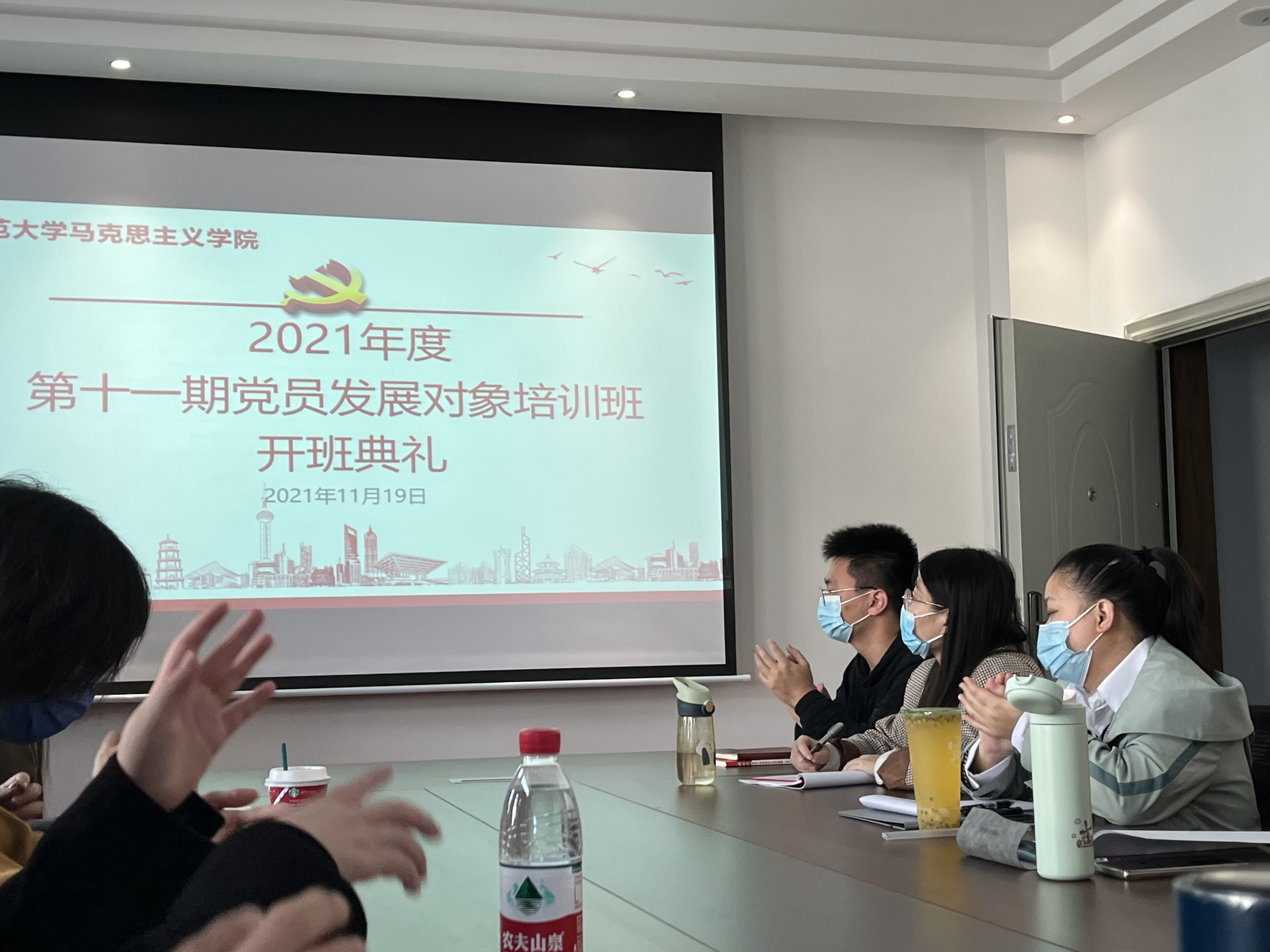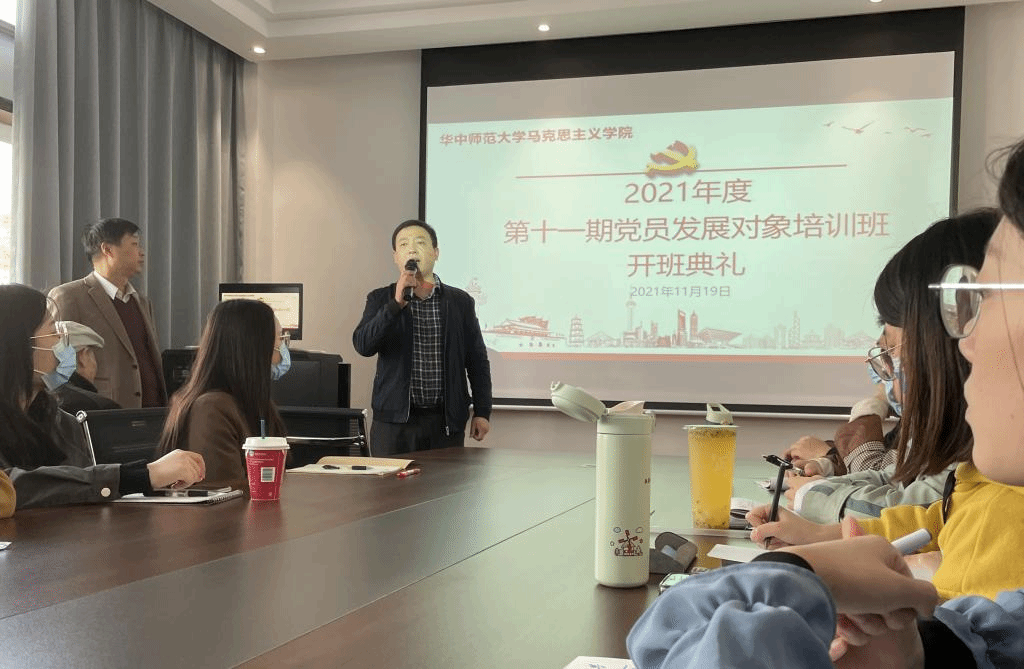 会议伊始,王海龙对此次大会的到场人员及会议流程作了初步介绍,随后,由董俊敏老师进行开班典礼致辞,董俊敏老师指出,相较于积极分子,作为发展对象,我们应该有更深的党性修养和觉悟,希望通过这次的发展对象培训班,每个学员都能对党有更深的认识,向党组织更加靠拢;随后,由曾爱华老师宣读和强调《华中师范大学马克思主义学院2021年第十一期发展对象培训班实施方案》,并强调了培训纪律。