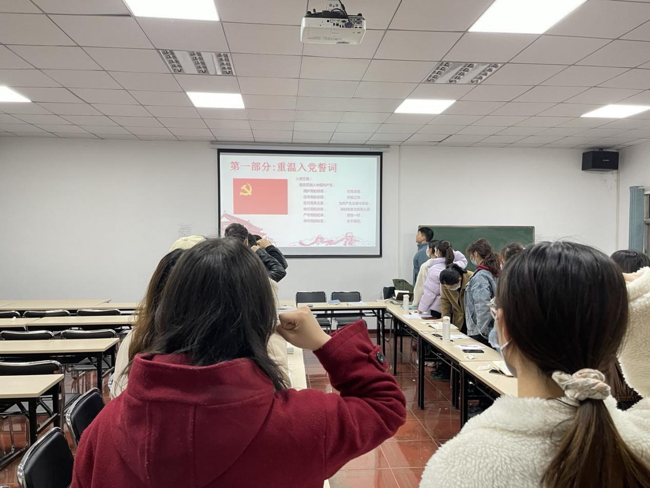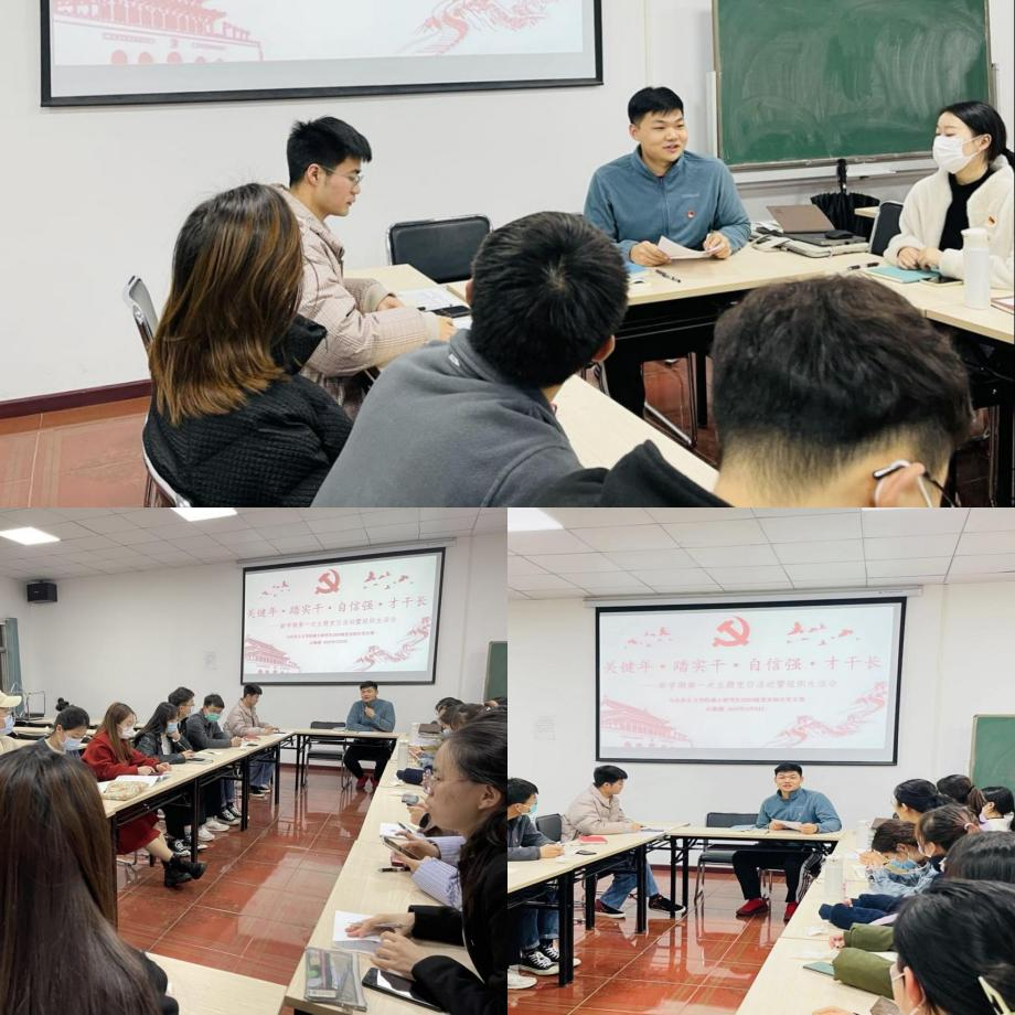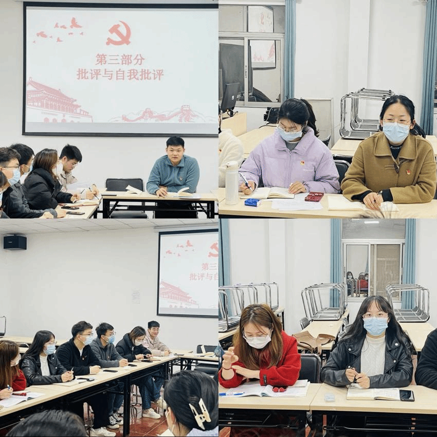 马克思主义学院讯(通讯员 邹丽 唐莉)2022年3月6日晚,硕士研究生2020级党史综合党支部在后勤楼二楼召开新学期第一期主题党日活动暨组织生活会。会议内容主要包括四个部分:一、重温入党誓词;二、支部书记述职;三、党员开展批评与自我批评;四、民主评议党员。由于疫情,部分党员无法线下参会,因此本次会议以“线上线下相结合”的方式开展,由支部书记周征宇主持,23名党员线下参会,2名党员线上参会,全员参与。