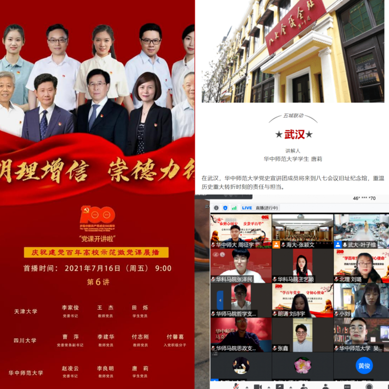 例如,我支部有16名研究生加入“大学生党史宣讲团”,他们以进班团、进支部、进组织、进社区、进博物馆的形式开展党史宣讲,共计实现宣讲达50人次,覆盖受众达2000人。且支部同学作为党史宣讲团核心成员自编自导自演原创沉浸式主题话剧展演《你好!恽代英》,公演时获得新华社、湖北日报、光明日报等十余家媒体报道及我校官微头条推送,其排演内容经中央电视台《国家记忆》栏目拍摄录制,之后又多次巡演,取得了广泛的社会影响。此外,支部通过组织红安之旅、“学百年党史 守初心使命”四省六校党史学习教育宣讲会、支部书记讲党课、新老支部传帮带、新老党员结对学、研习社主题宣讲、组织班级轰趴和赴东湖团建,开展线上线下、校内校外的联合活动。
