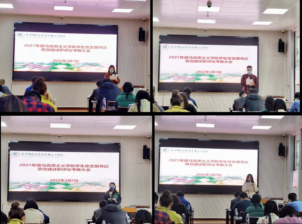 接着,各年级学生党支部依次述职,她们分别从支部2021年度党建工作开展情况以及存在的主要问题等方面回顾了2021年支部建设的工作内容,总结了党建工作的成果和存在的不足,并对努力方向以及下一步的工作进行了展望。