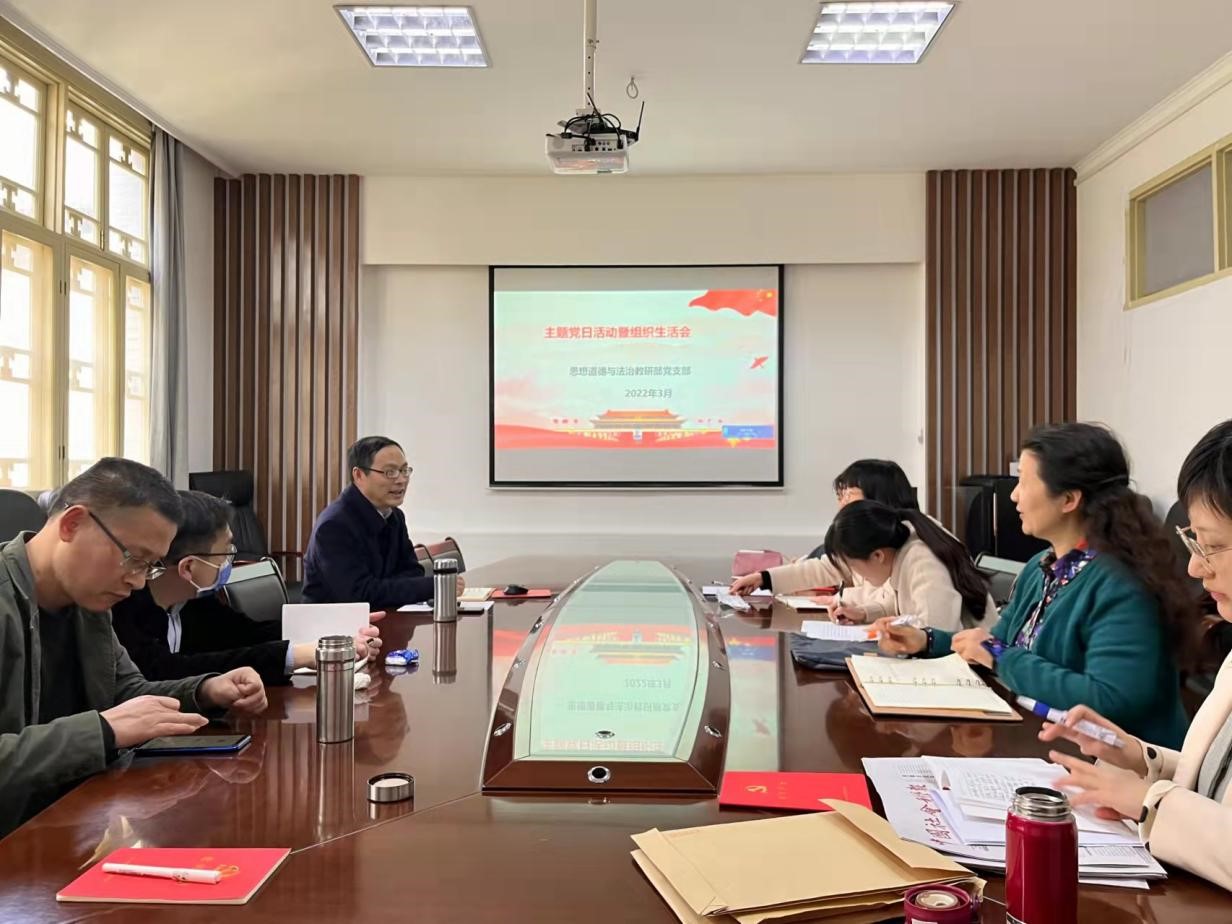 马克思主义学院讯(通讯员 彭菊花)2022年3月10日下午,马克思主义学院思想道德与法治教研部党支部于学院二楼会议室召开2月主题党日活动暨专题组织生活会。党支部书记徐秉国及支部全体党员教师参加。