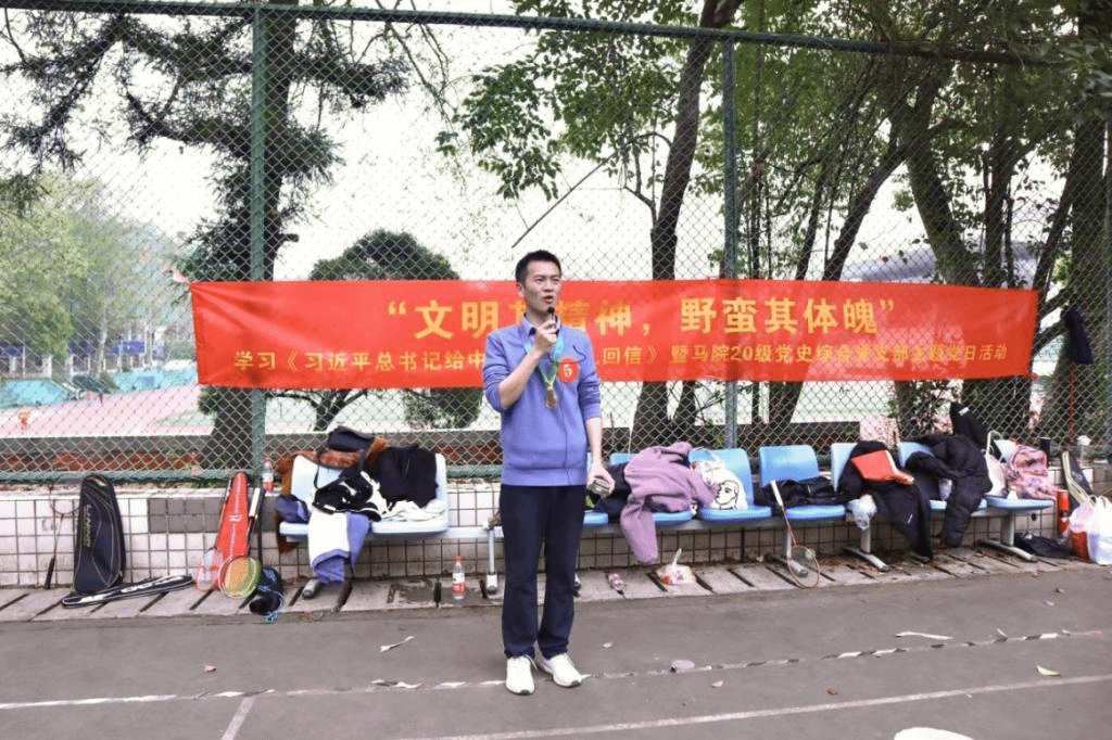 支部书记周征宇:迎着清晨的第一缕朝阳,我支部39名党员和入党积极分子来到乒羽中心前的羽毛球场地,一同感受春天的气息,挥洒拼搏的汗水。一场羽毛球联谊赛,拉近了大家的同学情,在“友谊第一,比赛第二”的赛场氛围中,运动员们不卑不亢地争夺每一分每一球,对手之间展现了竞技体育的精神,队友之间懂得了团结合作的力量。我想,这种运动实践不仅是对奥运精神的生动诠释,更是对它的发扬光大。祝愿2020级党史综合支部大家庭更加和谐,家庭里的每一份子越来越好!