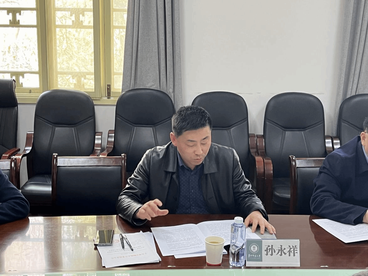孙永祥首先汇报了领导班子开展专题民主生活会前期准备情况,主要从四个方面从严从实做好各项准备工作,为开好民主生活会打牢了坚实基础:一是认真制定学院2022年度中层党员领导干部民主生活会工作方案;二是深入学习领会党的二十大精神;三是通过会议座谈和谈心谈话等,广泛听取意见;四是认真撰写班子对照检查材料和个人发言提纲。接着,孙永祥将学院领导班子落实“上一年度民主生活会整改情况”、“学校巡察整改情况”、“违规吃喝问题专项整治情况”进行了通报。随后,他对照六个重点方面进行了深入剖析,针对目前面临的突出问题,从“在对加强领导班子政治建设重要性的认识上”、“在对增强‘四个意识’核心要义的把握上”、“在对坚持以人民为中心发展理念迫切性的践行上”、“在对全面从严治党任务艰巨性的理解和执纪监上”等四个角度进行原因分析,并提出下一步整改措施。