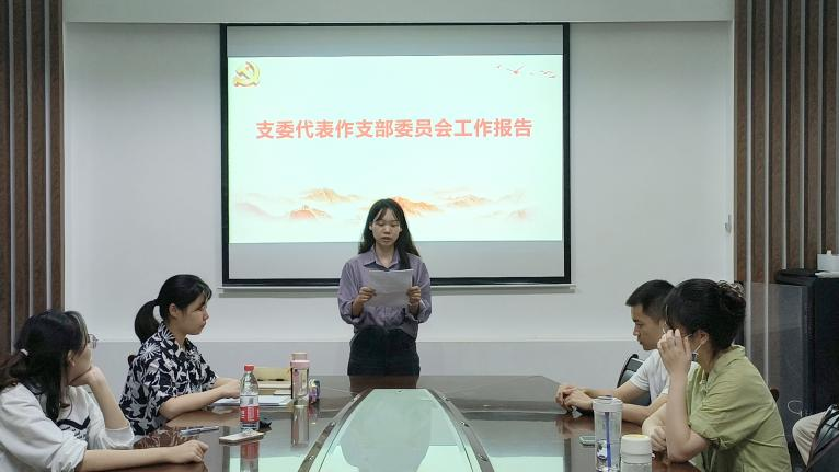 会上,在重温庄严的入党誓词后,党支部书记薛舒尹同志作为支委代表向全体党员、预备党员作支部委员会工作报告,汇报了一段时间以来党支部各项工作的落实情况,梳理并总结了党支部工作的不足之处,提出了切实可行的整改方案。随后,与会党员、预备党员代表以对党支部、党员同志高度负责的态度,就党支部各项工作开展了批评并提出了一系列中肯、适行的建设性意见。大家表示,希望在全体党员、预备党员的共同努力下,推进支部学风建设、品牌活动建设、理论学习创新、支部宣传工作迈向新的台阶。