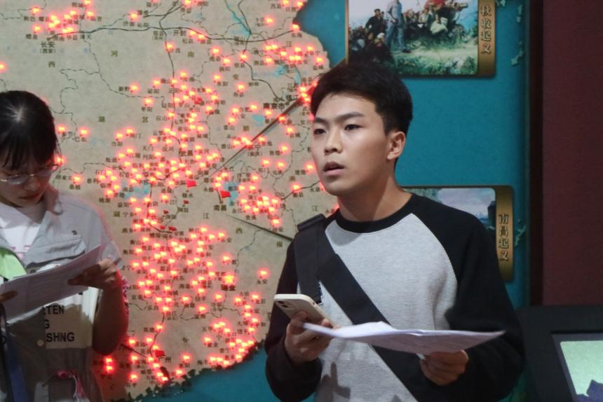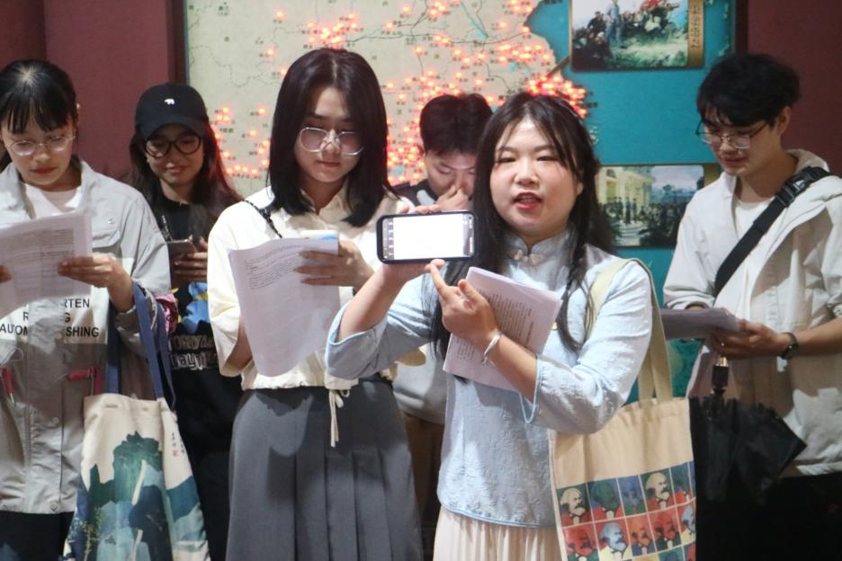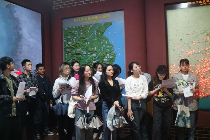 参观结束后,支部成员在第二小组的带领下利用场馆资源与学习资料就地开展理论学习。潘慧妮、喻煦云同志组织全体党员、团员重温《中国共产党党徽党旗条例》,强调了党徽党旗制作、使用、管理的原则要求,增强了全体党员、团员规范使用党旗党徽的思想自觉。