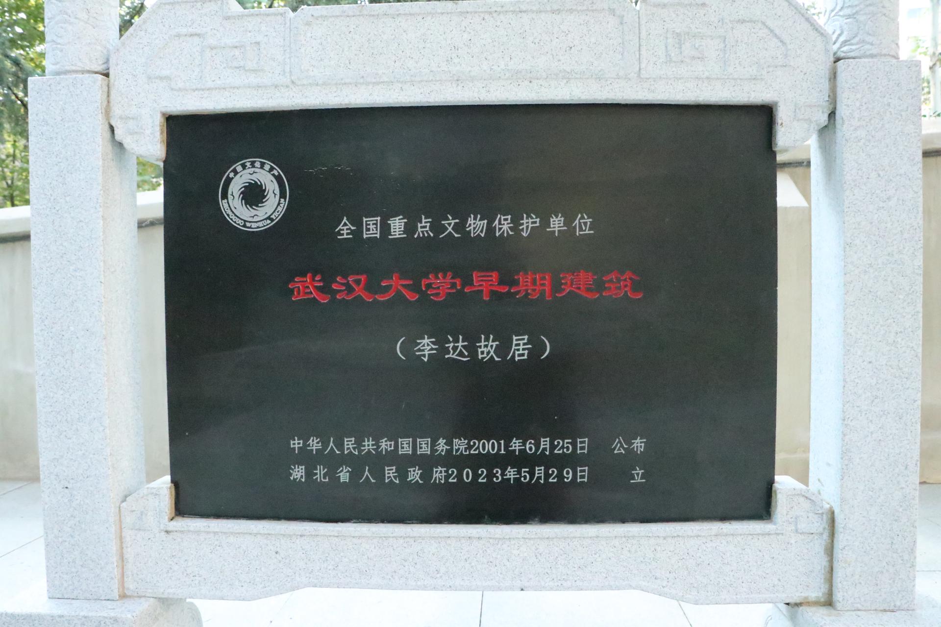 李达是杰出的马克思主义理论家、宣传家和教育家,中国共产党的主要创建者和早期领导人之一,是武大校史上任职时间最长的校长。李达故居为国家级文保单位,武汉大学高度重视、精心推进李达故居保护修缮工作,修缮后的李达故居成为集纪念瞻仰、理论研究和思政育人于一体的爱国主义教育基地。李达故居是武汉大学早期建筑群的重要组成部分,故居位于珞珈山南麓西部,坐北向南,背靠珞珈山南坡,1954年建成。故居由院墙围合的三栋砖木结构平房组成,分别为主楼、警卫室、门房,外部以院墙围合,形成独立空间,庭院内种植花草树木,占地面积约1955㎡,总建筑面积约335㎡。李达作为武汉大学校长(1953年-1966年)一直居住、生活其中直至1966年8月去世。