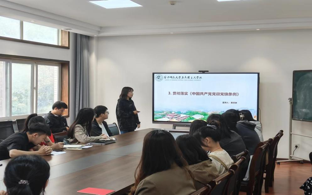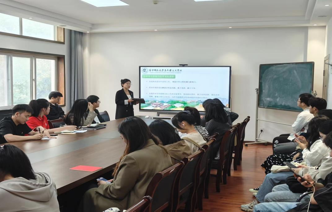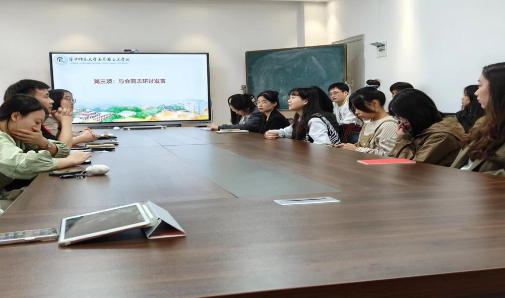 马克思主义学院讯(通讯员 杨颖慧;摄影 杨颖慧)为深入推动学习贯彻习近平新时代中国特色社会主义思想主题教育扎实开展。2023年10月27日,华中师范大学马克思主义学院硕士研究生2023级党史综合党支部于3号楼506组织开展十月主题党日活动。