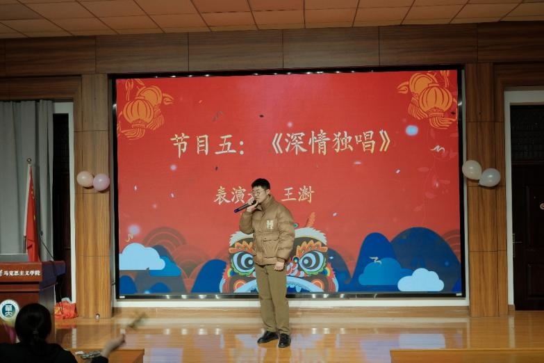 晚会在范子豪和姜泉宇的《歌曲串烧》中拉开序幕,美妙的旋律和歌声使现场氛围逐渐升温。潘巧玉和姜登飞精心呈现的动感舞蹈《Myself》让大家深切感受到青春的生命力。王澍的深情独唱《依然爱你》向大家送去了新年的关心和祝愿。丁文霞和陈雨菲的《小幸运》将个人表演与观众互动巧妙结合在一起,让大家在寒冷的冬夜感受到独一份的温暖。