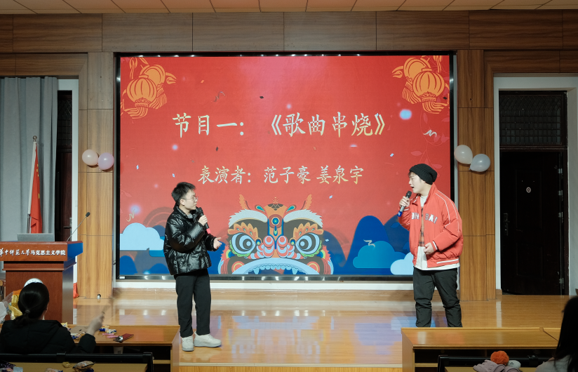 第三项,2023级党史综合班级开展以“百廿华师开新途,马院青春正当时”为主题的元旦晚会。本次活动由学院学生工作办公室主任王海龙老师担任总策划人,在班长王澍和支部书记高源的带领下,支委、班委通力配合,出谋划策,同学们热情参与、倾情相助。活动邀请了研究生会文体中心干事丁文霞、叶忠鹏担任主持人。
