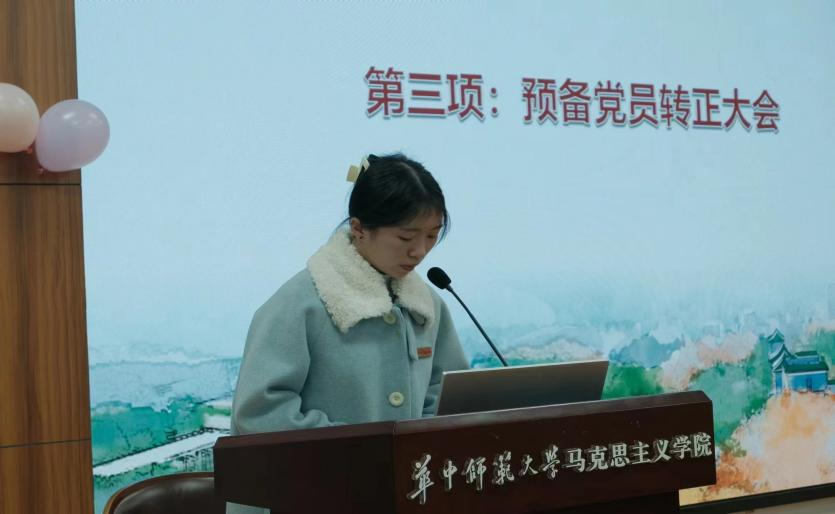 第二项,召开预备党员转正大会。会上,蔡晓诗、何昱两位同志宣读了转正申请,详细汇报了自己在预备期间的思想、学习、生活等情况,表达了入党志愿和决心,并明确了今后努力的方向。与会正式党员进行无记名投票。最后,学生党支部书记高源宣读了党支部票决决议,同意蔡晓诗、何昱两位同志如期转正。