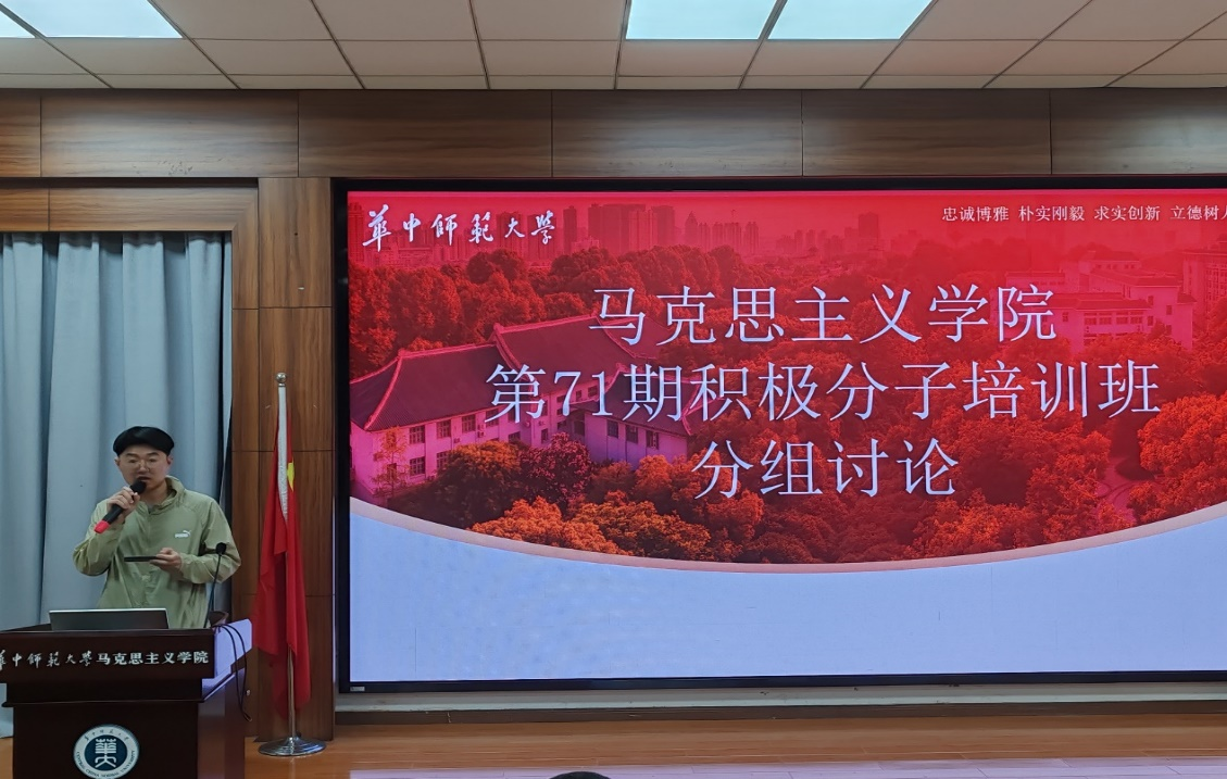马克思主义学院讯(通讯员 马亦扬 王澍)为扎实做好入党积极分子培训工作,切实提升入党积极分子的党性修养。5月18日晚,马克思主义学院第71期入党积极分子培训班在1101教室举办分组讨论会。本次活动由学院党政办公室副主任赵慧老师、学院组织员曾爱华老师、学院学生工作办公室主任王海龙老师指导,积极分子培训班班长王澍同学主持本次讨论活动。