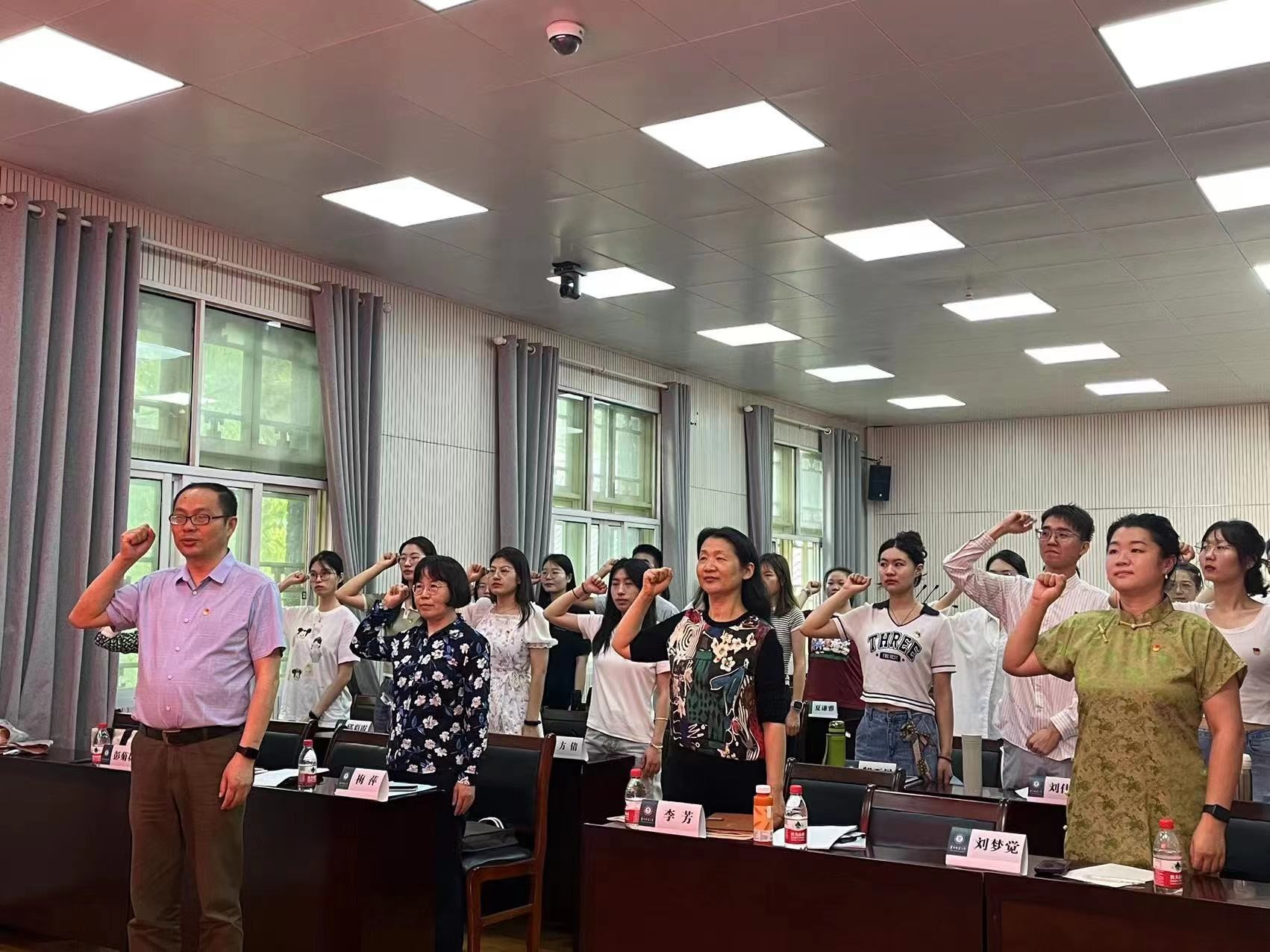 第一项议程,由思想道德与法治教研部党支部书记徐秉国同志带领重温入党誓词。全体党员高举右拳,铿锵有力地复诵誓词,时刻谨记党员的初心和使命,坚定信仰和热爱。
