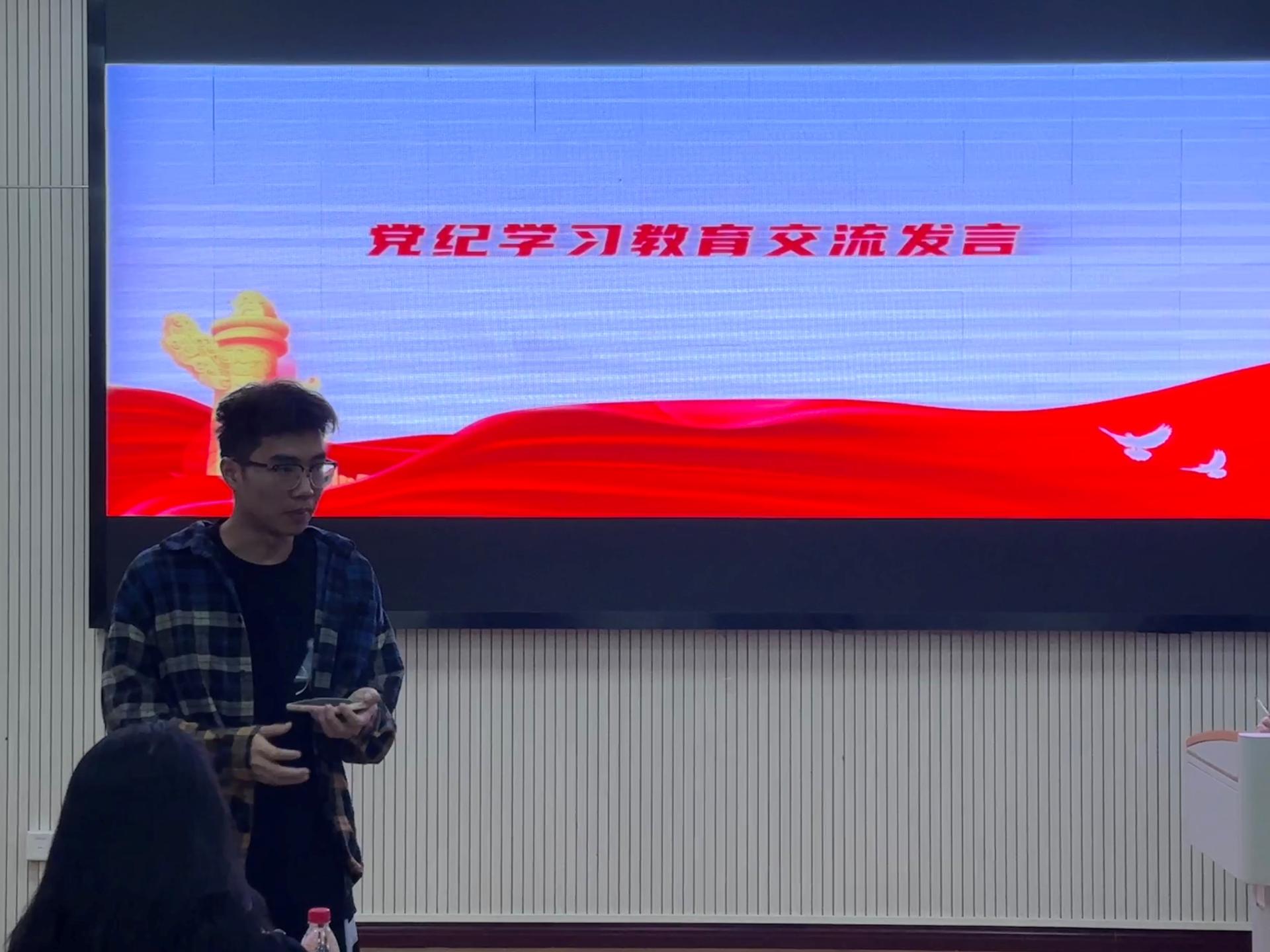 随后,硕士研究生2023级思想政治教育党支部的党员亦踊跃交流发言。刘伟俊、谭萍等10余名同志就学生党员应当如何强化纪律意识,以党章党纪对标做好批评与自我批评,发挥纪律建设的标本兼治作用,推动全面从严治党向纵深发展等方面展开交流。