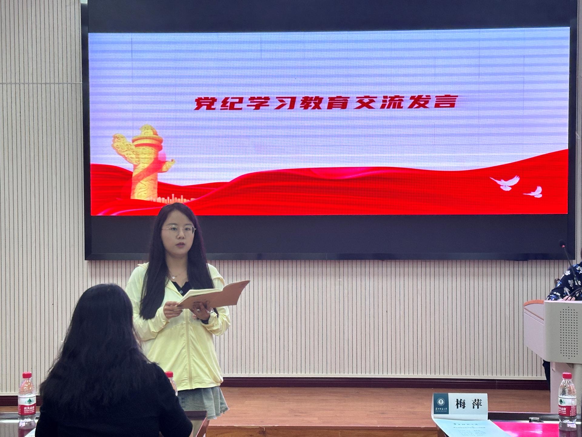 首先,思想道德与法治教研部党支部的李芳、彭菊花、刘梦觉与李春火等同志就此次的党纪学习教育陈述心得。四位老师分别从加强政治自觉、思想自觉与行为自觉,以制度建设推进自律与他律相结合,慎独慎微守住底线等方面分享了自身的理解与感触,表示党员应当用好《条例》标尺,扎牢纪律“篱笆”。