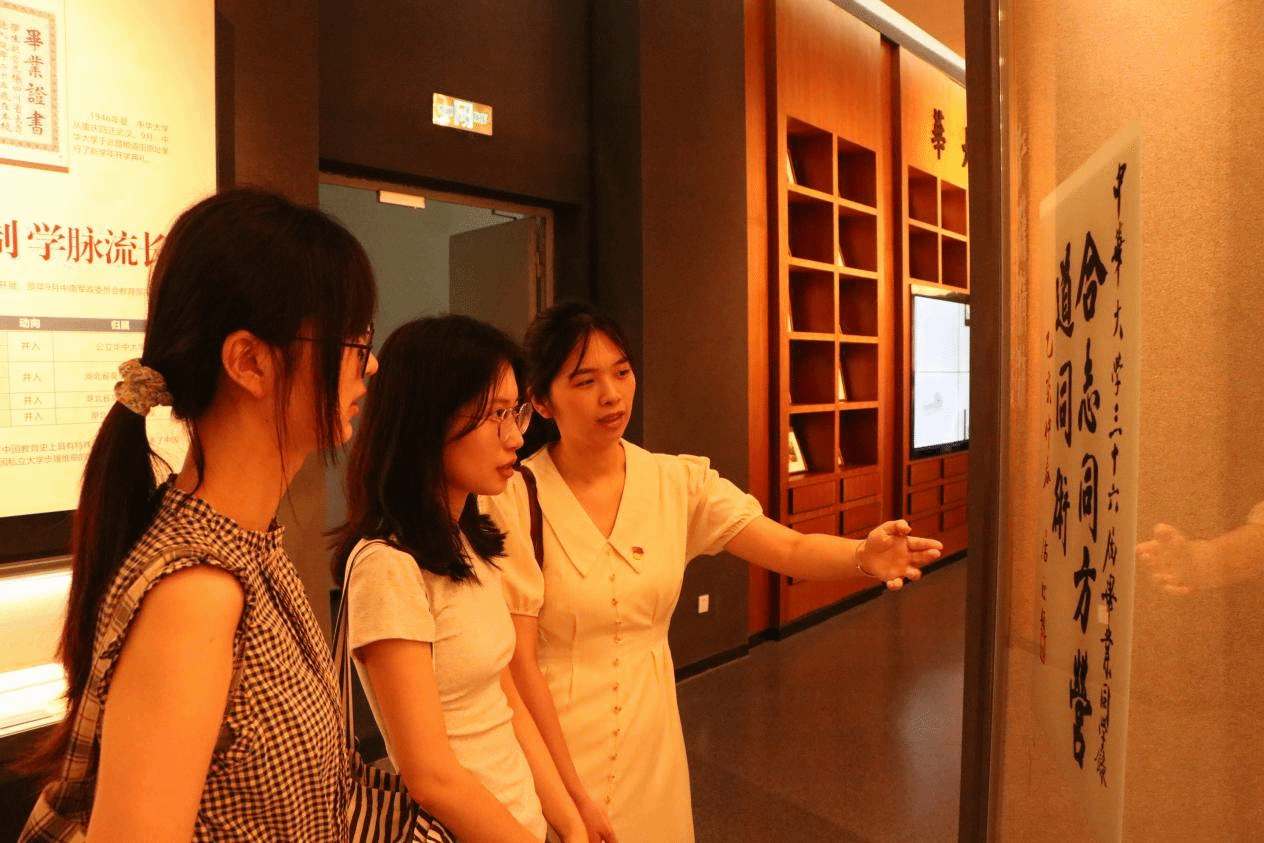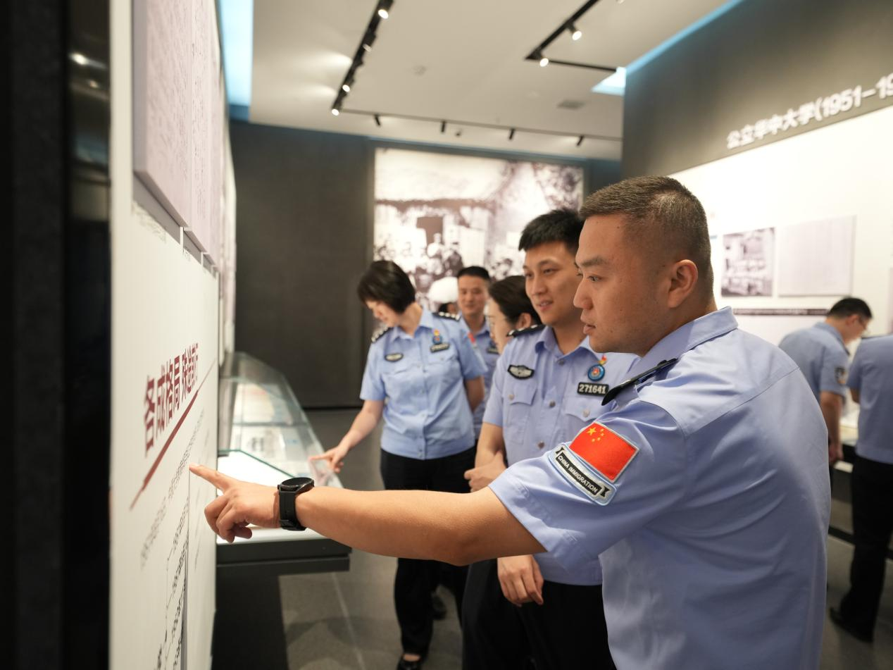 在实地调研阶段,武汉出入境边防检查站一行先后走进华师校史馆的印象华师、百年辉煌、世纪华章三个展厅,以学校发展历程为主线,通过参观图文展板、实物展示、场景还原、多媒体放映及互动等形式,全面集中了解我校120多年的办学历程,感受厚重的学校文化建设历史,体验历史的厚重感与现代的科技相融合,感受学校蓬勃发展的事业。