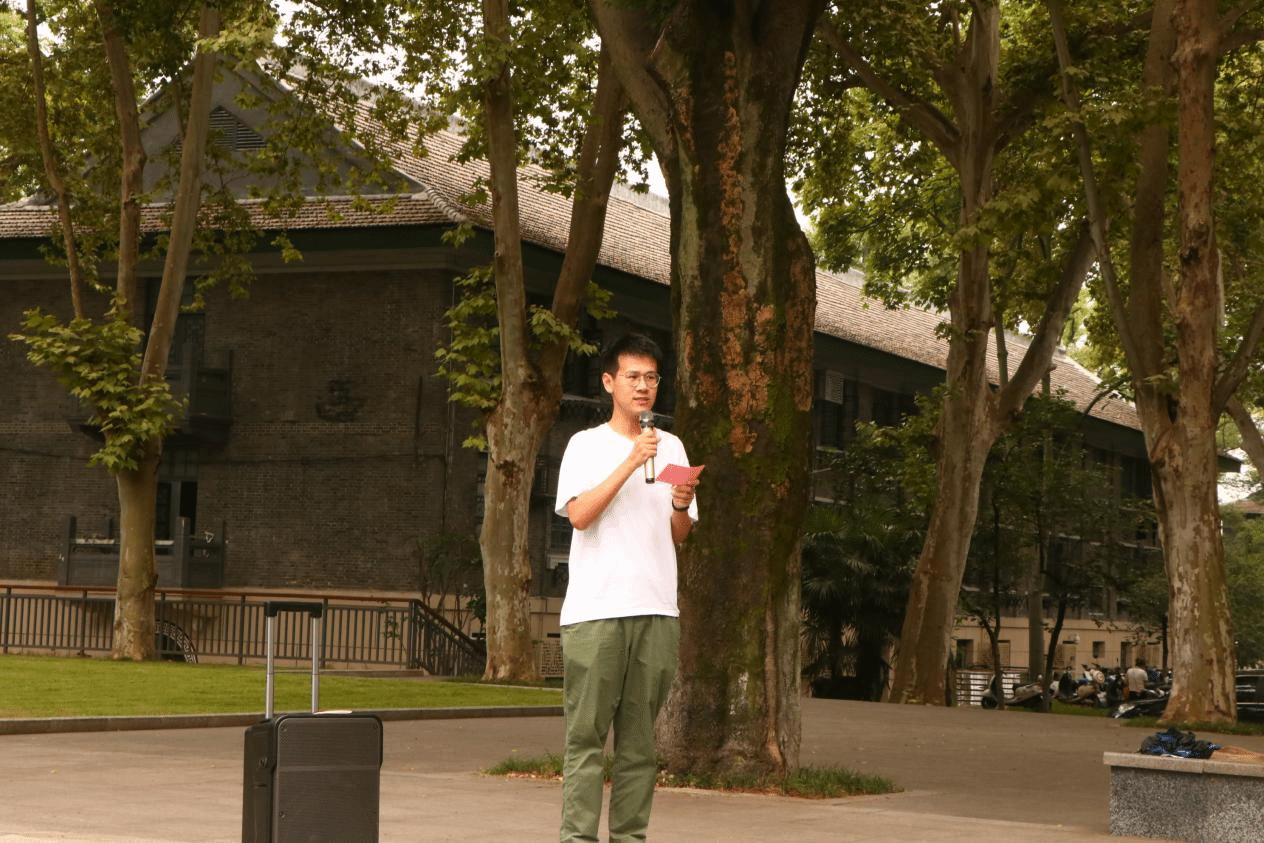随后,全体党员同志一起前往恽代英广场,由我院思想政治教育系党支部书记高鑫主持共同缅怀革命先烈恽代英同志。马克思主义学院邵成新同学作为代表讲述 了“中国革命青年的楷模”恽代英同志不平凡的一生。作为“中国革命青年的楷模”,在学生时代,恽代英同志就积极参加革命活动,是武汉地区五四运动的主要领导人之一。他致力于传播新思想、新文化,对青年一代产生了深远影响。他的事迹激励着无数的后来人继续为革命事业而奋斗,他的精神感召着一代又一代青年为中华民族的伟大复兴而不懈奋斗。紧接着,各位党员同志向恽代英雕像鞠躬致敬。随后,由高鑫党支部书记领誓,带领大家重温入党誓词。
