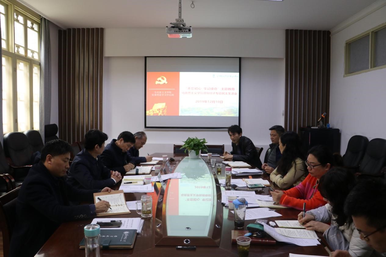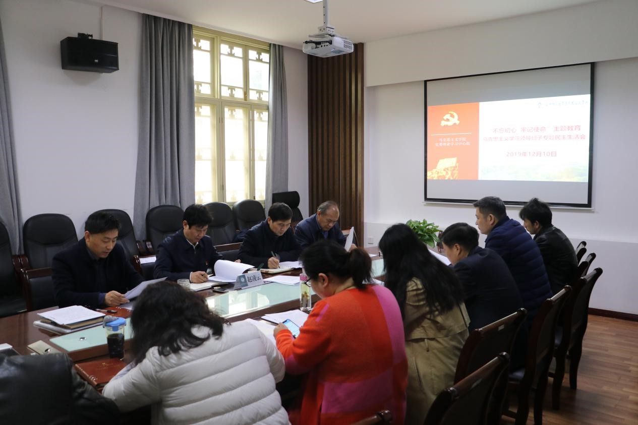 马克思主义学院讯(通讯员 唐慧颖;摄影 唐慧颖)12月10日上午,“不忘初心、牢记使命”主题教育马克思主义学院领导班子专题民主生活会在学院二楼会议室召开。校党委书记赵凌云,学校“不忘初心、牢记使命”主题教育巡回指导第一组组长、副校长任友洲出席指导,全体领导班子成员参加会议,工会主席列席会议。会议由马克思主义学院党委书记孙永祥主持。