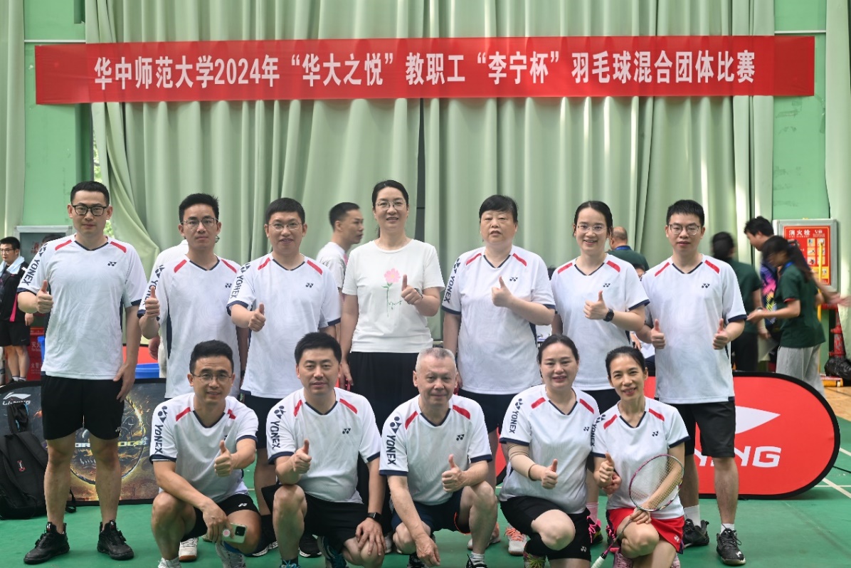 马克思主义学院讯(通讯员 刘莉莎;摄影 周莉莉等)6月14日-16日,华中师范大学2024年“华大之悦”教职工“李宁杯”羽毛球混合团体比赛在学校乒羽中心举行。我院党委书记孙永祥、工会主席周莉莉、球队教练李东升,以及邵彦涛、陈吉胜、王斐、雷禹、崔伟锋、李哲、熊富标、肖超、戴圣鹏、姜红、殷筱、董小红、刘莉莎等十余位教职工参与了此次比赛。在组建院羽毛球队及其发展方面劳苦功高的原任工会主席余四川老师虽已退休,仍亲临现场为球队指导、助威。