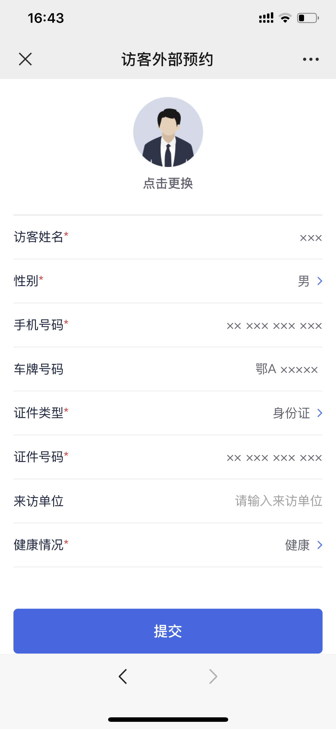 02.登录访客登记页面后,来访人如实填写相关信息。