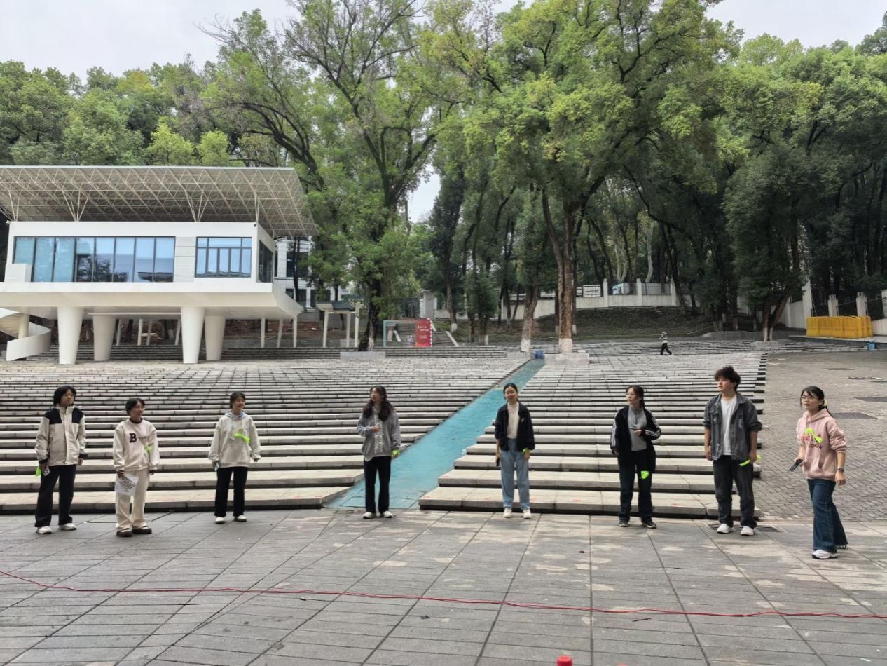 活动伊始,体育部成员早早到场,精心布置活动场地,并详细讲解比赛规则。随后,大家被随机分成八个小组,各自展开任务打卡活动。打卡任务丰富有趣,例如在“守护球宝”项目中,各小队成员需要先说出含“西”字的古诗词方可进入正式项目。进入正式项目后,队员们需利用U型槽接力传送乒乓球。队员们屏息凝神,全神贯注地传递着小小的乒乓球,既要保持速度,又要确保小球的稳定传输。每当有队伍成功将球送入终点杯内,现场便爆发出热烈的掌声和欢呼。这个项目不仅增进了团队成员间的信任,更让同学们深刻体会到团结协作的重要性。