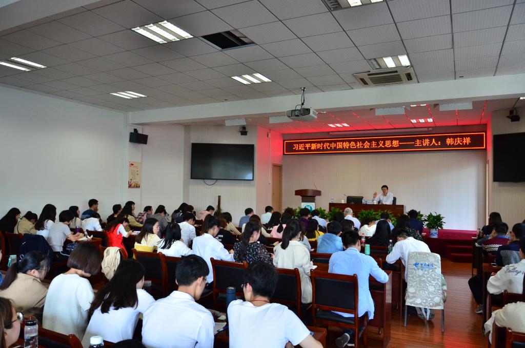马克思主义学院讯(记者 胡丹丹;摄影 张许加) 为了更好地学习贯彻十九大精神,深入领会习近平新时代中国特色社会主义思想,2018年3月31日下午,以“习近平新时代中国特色社会主义思想”为主题的专题讲座在大学生活动中心四楼报告厅圆满举办。参加本次此讲座的主要人员有马克思主义学院的师生代表等百余人。