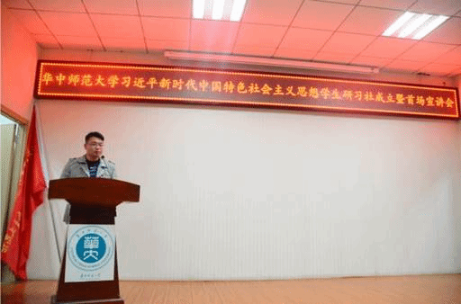 马克思主义学院讯(通讯员 赵芸逸 见习记者 刘泽伟)为做好党的十九大精神的解读和宣传,引领大学生真正领会习近平新时代中国特色社会主义思想精髓,10月29日,华中师范大学习近平新时代中国特色社会主义思想学生研习社(以下简称研习社)成立大会暨首场宣讲活动在我校大学生活动中心举行。校党委副书记骆军,汉阳区区常委、宣传部部长郭笑撰,学校组织部、宣传部、学工部、校团委负责人受邀出席会议。学院分党委书记钟选友、院长万美容、分党委副书记邵莉莉以及研习社指导老师和学生代表参加此次活动。