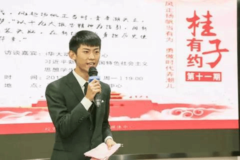 11月20日晚,i华大动漫艺术中心和习近平新时代中国特色社会主义思想学生研习社两大学生团体做客第十一期桂子有约,齐聚分享他们和十九大之间的故事,并倡导新时代大学生用新思想、新理论武装头脑,在新征程中勇担历史使命。