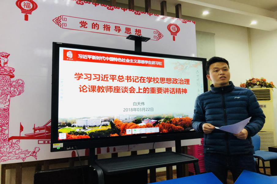 马克思主义院讯(通讯员 李悦悦)3月22日,研习社召开例会,组织全体在校成员专题学习了习近平总书记在学校思想政治理论课教师座谈会上的重要讲话精神,并就近期重点工作进行了安排部署。会议由研习社社长白天伟主持。