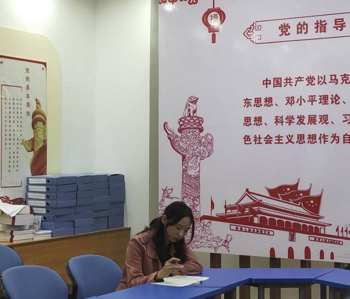 会议第三项,研习社第二届社长白天伟发表讲话。白天伟首先总结过去一年研习社的工作,其中主要是研习社策划了上百次宣讲习近平新时代中国特色社会主义思想活动、编辑了华中师范大学张耀灿教授的口述史、归纳出研习社成果册以及自主布置研习社活动室等。其次,白天伟从以往工作中发现问题,总结经验并给出了有效建议。随之,进入会议第四项,第三届研习社新成员王宇红代表发言。王宇红肯定了第二届研习社成员们的工作,对过去一年研习社的成果十分称赞。并对新一届的研习社成员们给予了鼓励,她希望未来一年的研习社能够接续发展,更上一层楼。