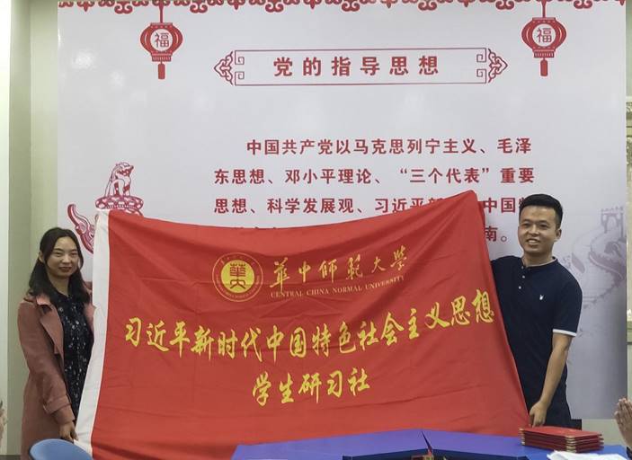 马克思主义学院讯(通讯员 胡霜;摄影 胡霜)10月10日下午4时30分,华中师范大学习近平新时代中国特色社会主义思想学生研习社(以下简称研习社)于马克思主义学院二楼会议室举行了换届仪式暨新老成员见面会。出席此次会议的领导和老师有马克思主义学院党委书记孙永祥、党委副书记邵莉莉,研究生辅导员丁琳以及本科生辅导员陈陈瑾。