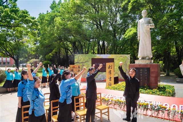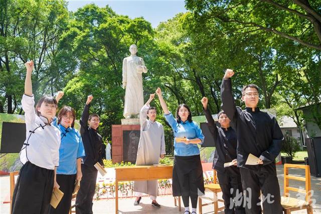湖北日报讯( 通讯员 党波涛 韩晓玲;摄影 陈希昌)“中国共产党万岁!”4月29日,在华中师范大学恽代英广场上,原创沉浸式主题教育话剧展演《你好,恽代英》举行。话剧尾声,恽代英壮烈牺牲的一幕深深震撼了师生们。