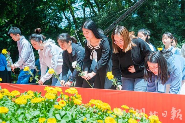 青年学子质朴感人的展演,吸引了众多师生观看。展演结束后,师生们在恽代英雕像前敬献鲜花,深深鞠躬致敬。