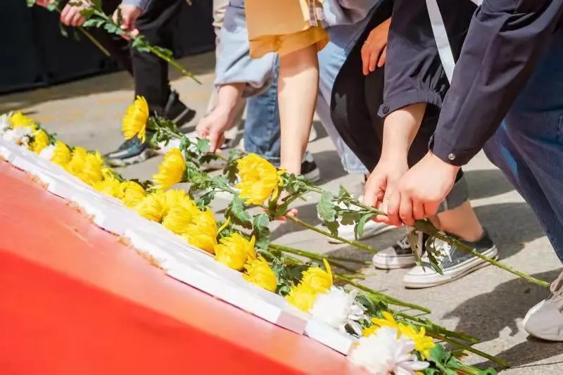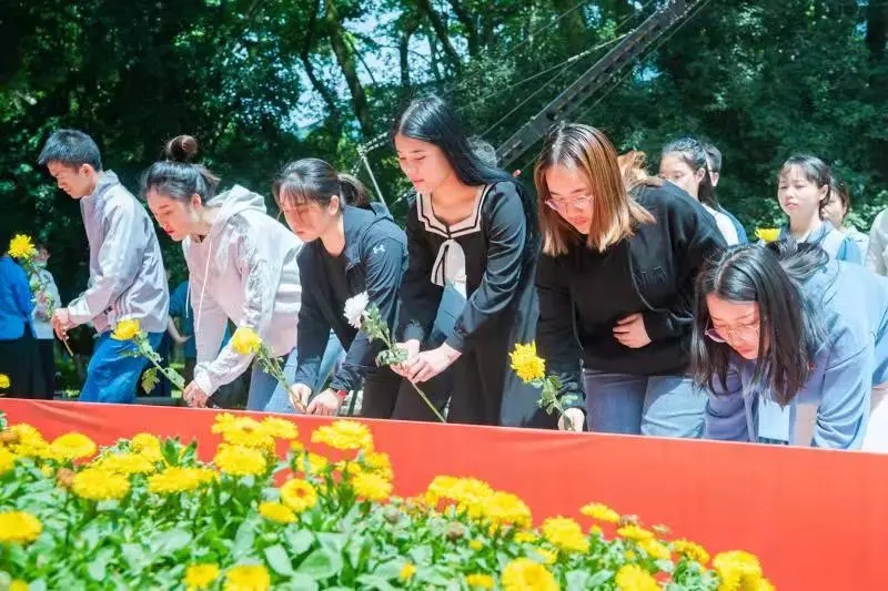 演出结束后,师生们向恽代英广场上的恽代英雕像敬献鲜花,鞠躬致敬。