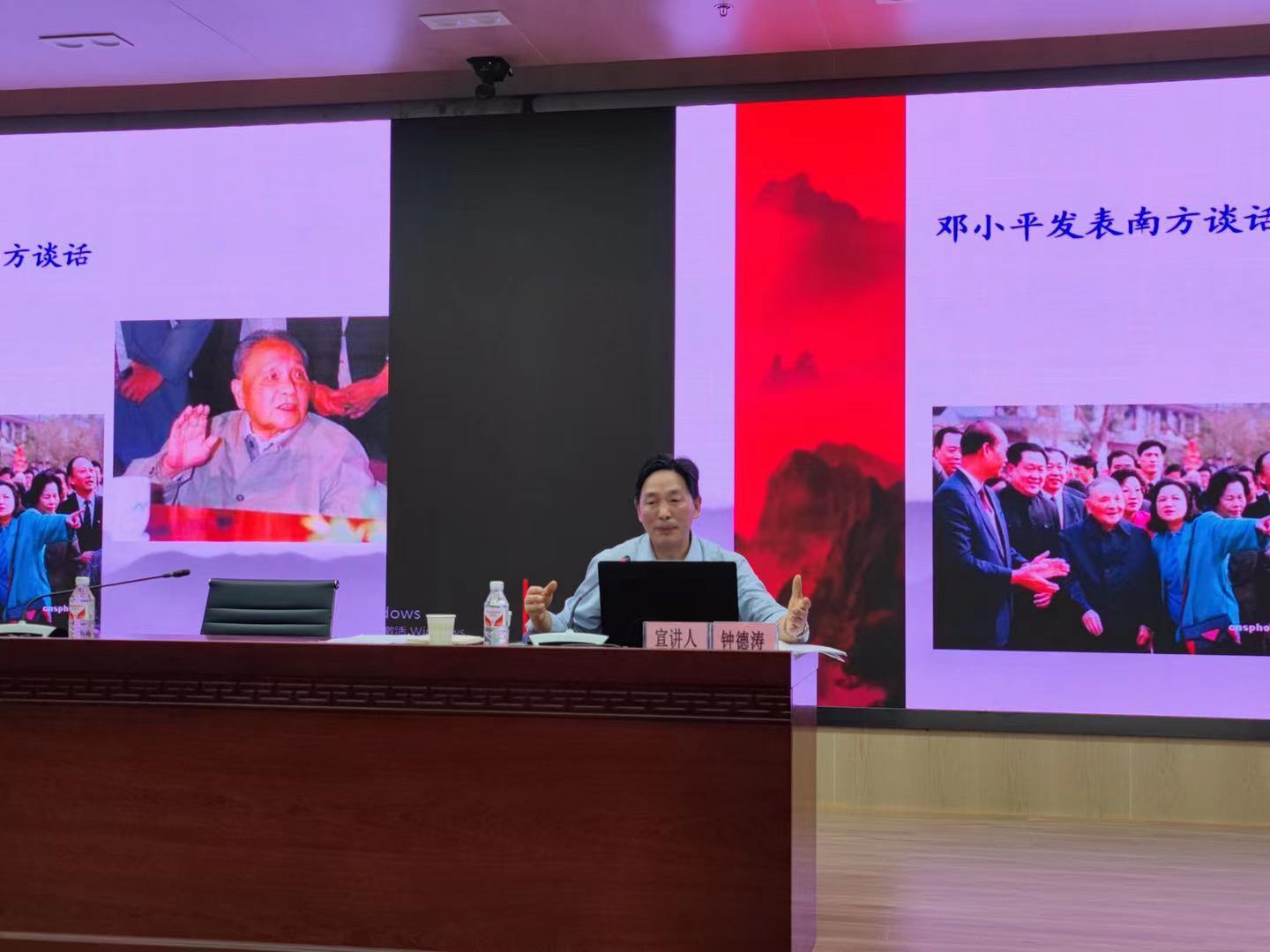报告会上,钟德涛教授以《中国共产党的光辉历程和伟大历史贡献》为题,从三个方面精彩讲述了中国共产党艰苦卓绝的百年奋斗历程,系统总结了中国共产党取得的辉煌成就和作出的伟大历史贡献。"读史不忘初心,读史悟道明志,读史勇于担当",钟教授勉励大家要从党史学习中汲取智慧和力量,走好新时代赶考路,当好新时代答卷人。