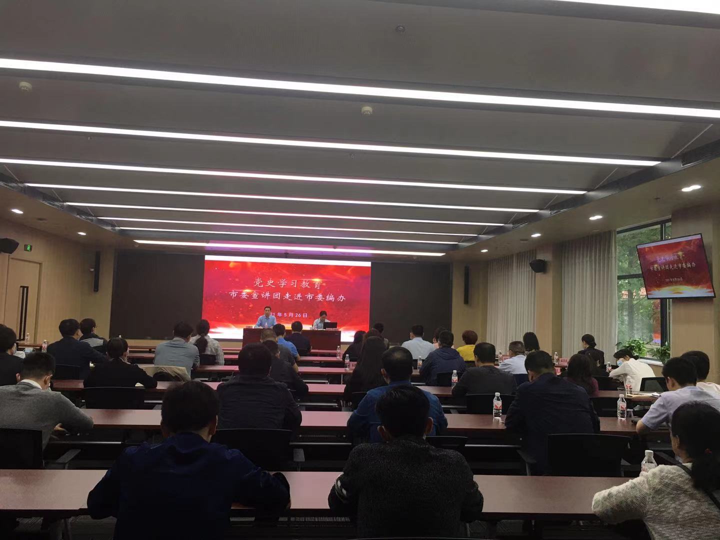 5月26日,党史学习教育市委宣讲团走进市委编办,省委、市委宣讲员成员、华中师范大学马克思主义学院教授钟德涛作宣讲报告。市、区机构编制部门全体党员,共建社区岳飞社区工作人员近百人参加报告会。