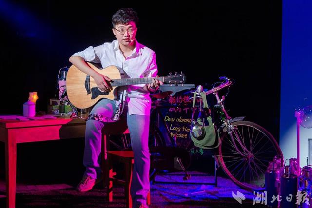 85岁老教师刘文君从舞台上的相框中走出来,回忆当年的《逻辑学》课堂。老教师李良明、李天保也与学生进行深情对白,分享在桂子山上学习、工作的记忆。现场的师生和校友们纷纷以诗朗诵、乐器演奏、歌曲演唱、家书讲述等方式,致敬青春、致敬梦想。