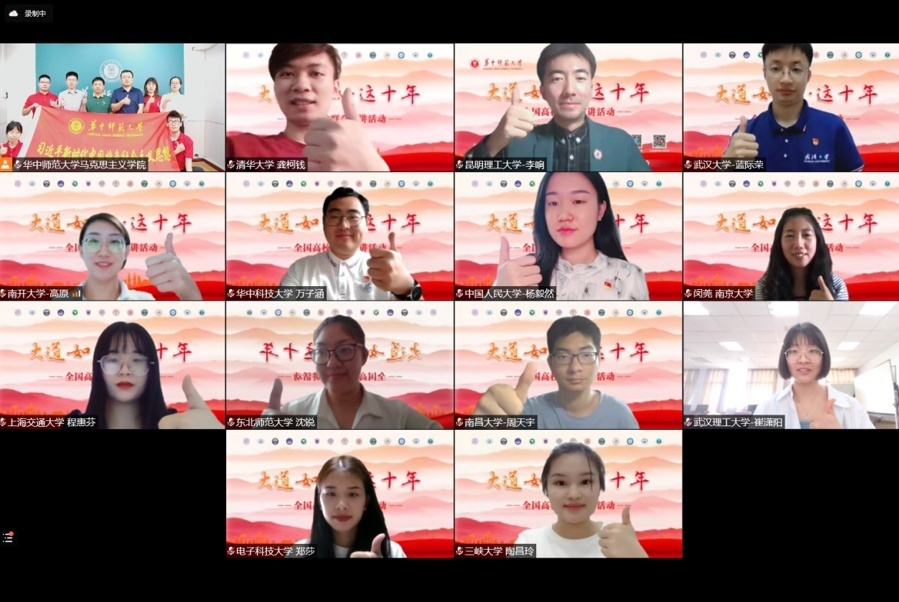 为迎接党的二十大胜利召开,凝聚起新时代大学生奋进新征程的青春力量,由华中师范大学马克思主义学院主办的“大道如砥,这十年”全国高校联合宣讲活动在线上成功举行。