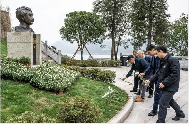 3月20日上午,专家学者们来到夏明翰烈士出生地归州镇,在夏明翰雕像前献花,在夏明翰事迹展馆中进行“大思政课”学术交流,怀着无比崇敬之意缅怀纪念夏明翰。