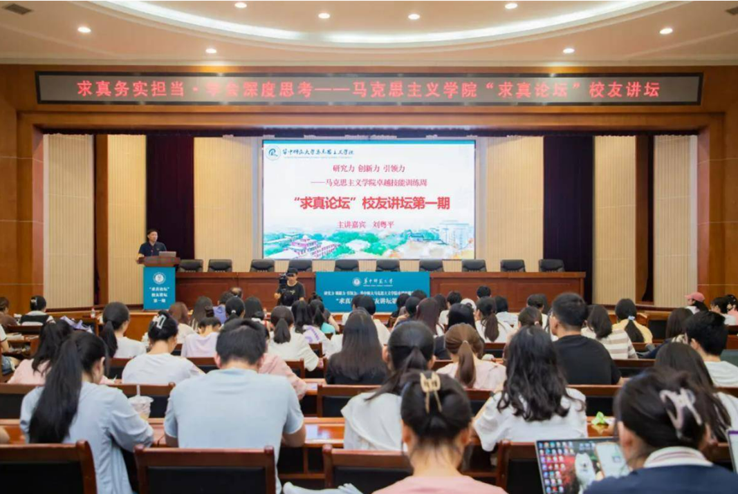 华师马克思主义学院在第三学期举办了以“研究力、创新力、影响力”为主题的卓越能力训练周,包括逻辑思维培训会、创新创业培训会、求真论坛(企业家专场和校友专场)、礼仪素养专题培训、思政名家面对面、社会调查专题培训、教学技能展示和教学能力测试等一系列活动。